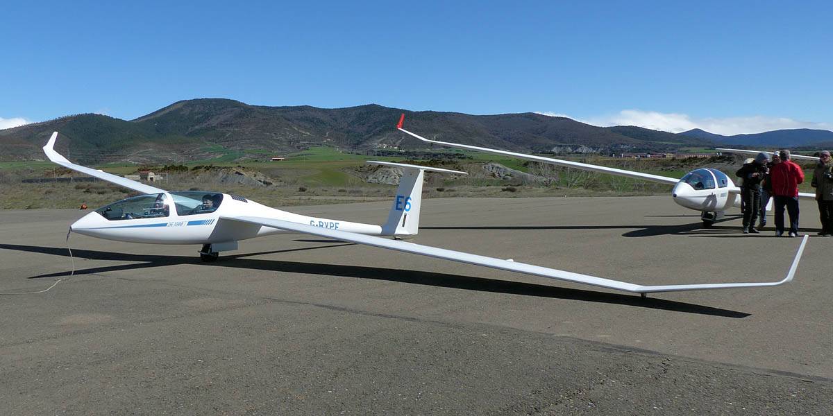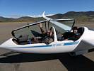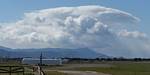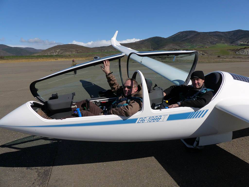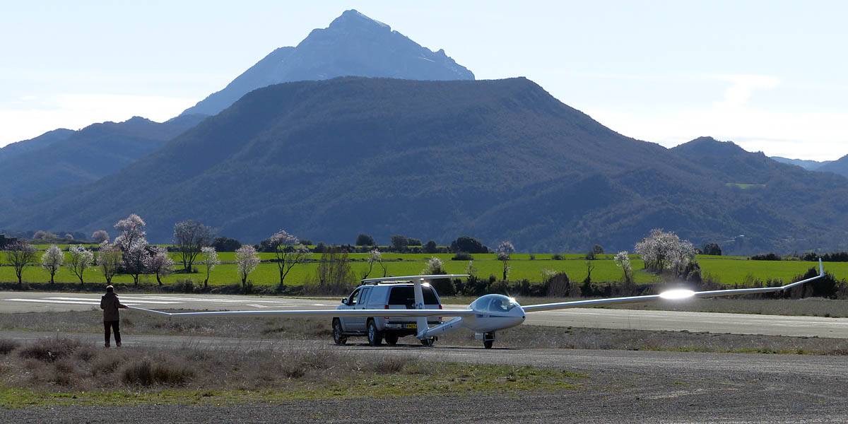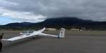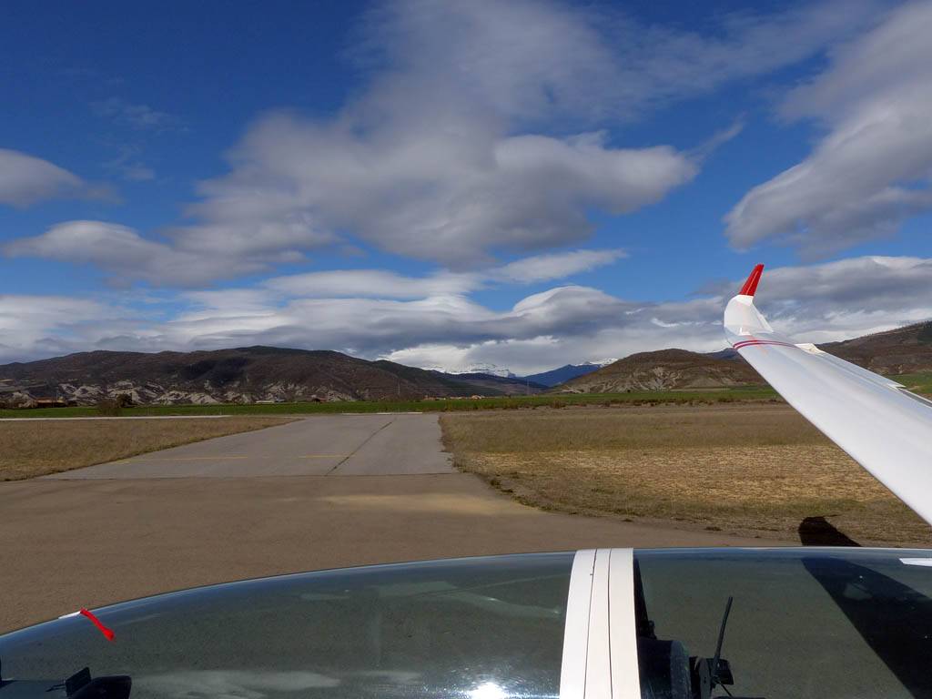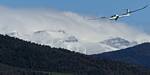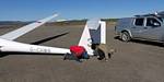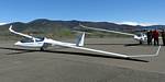 | Gliders parked near runway 27 ready to fly. Seen from by the clubhouse. | Even from the ground the way the clouds flow over the peaks was spectacular. | Paul and Richard preparing to launch in the private glider. | ||
