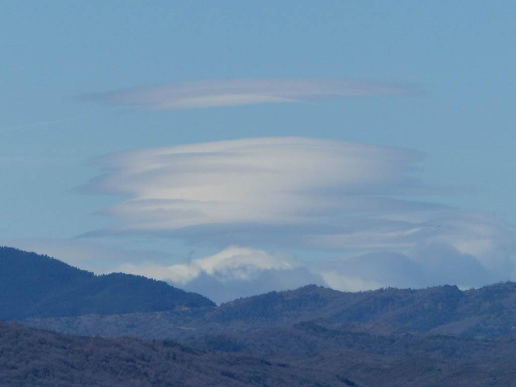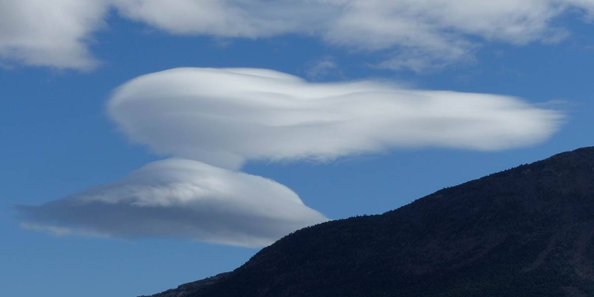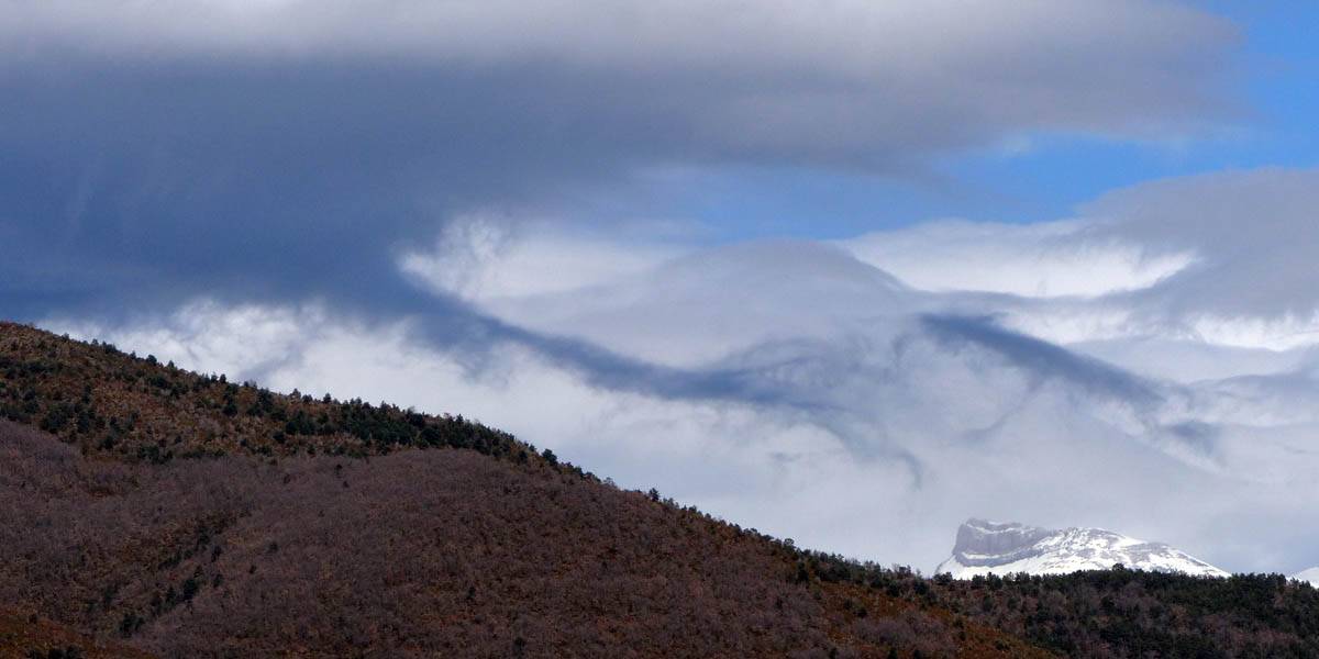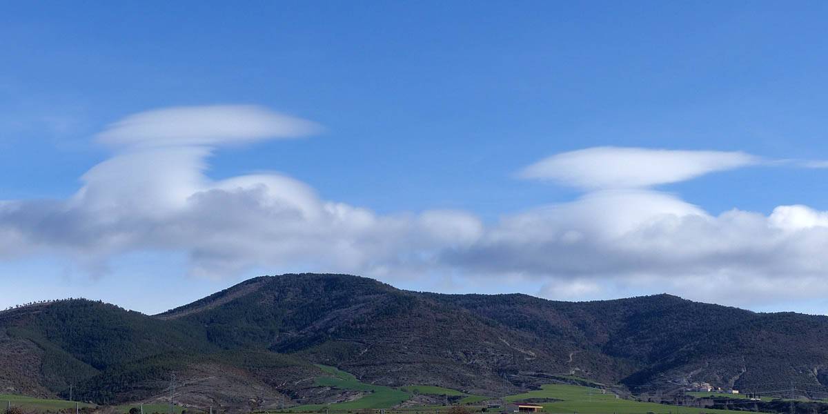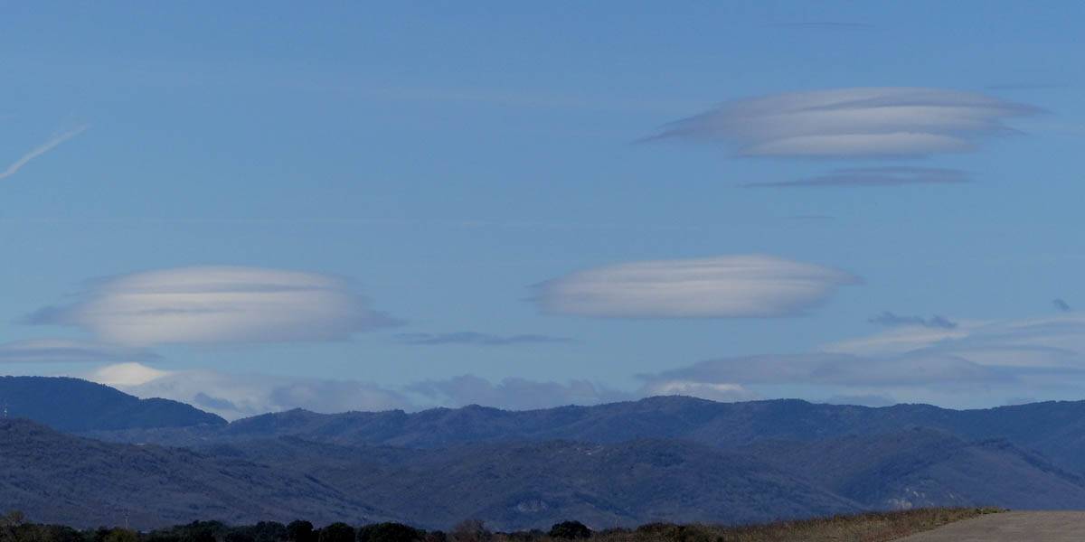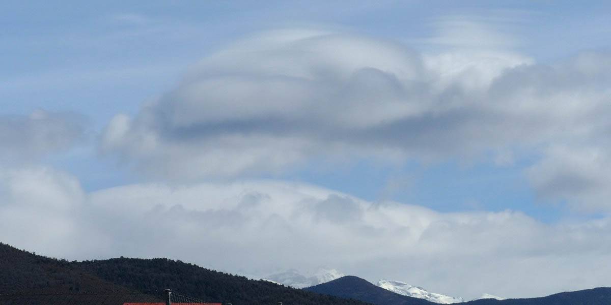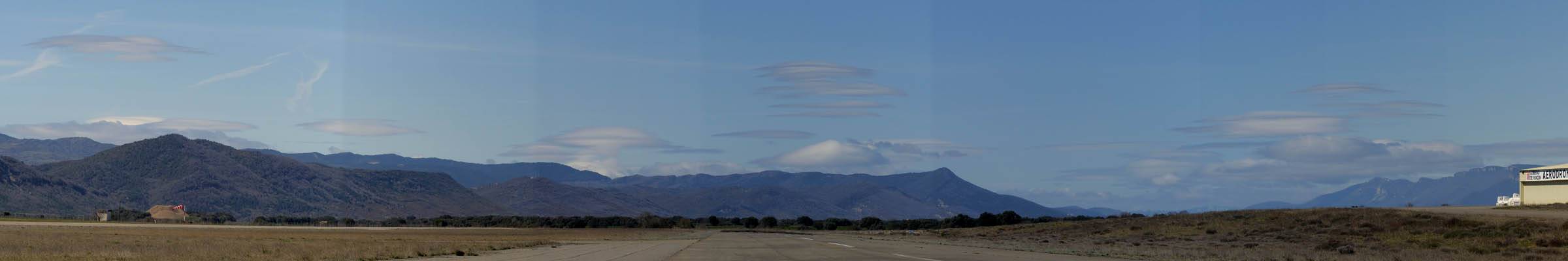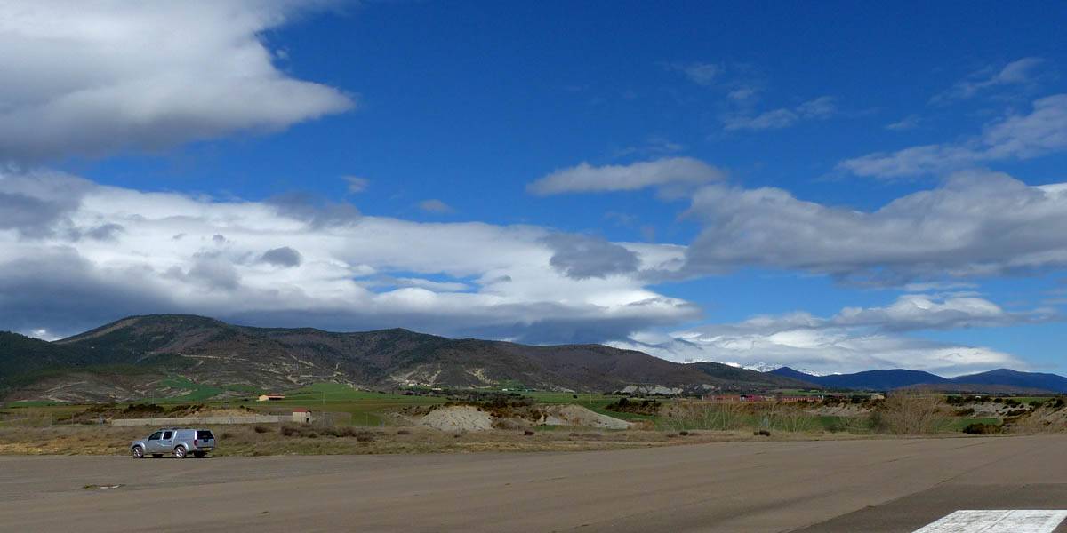 | A sky of lenticulars greets us when we arrive at the airfield. | A crystal clear sky to the Southeast above Oroel. | Another pretty low wave cloud (top of the rotor) with it's smooth shape. | ||