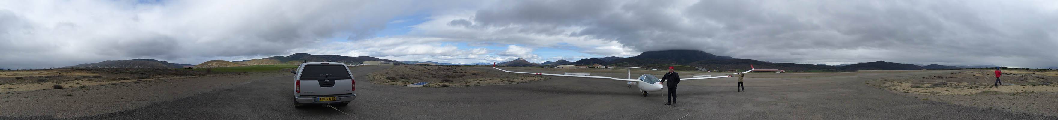 That's better! I could see blue sky out the window when I woke up. Breakfast was quick as there was a push to get to the airfield early as today might be the best day of the week. We got the gliders out straight away on arrival at the airfield and were ready well before the 10:30AM briefing. It was looking potentially good for wave with lenticulars in places on the satpic. We were expecting a clear day. The gliders launched between 11AM and 12PM. The Northwesterly cross wind looked a bit challenging. I could see one of the 1st pilots circling over Stage 2 for quite a while.