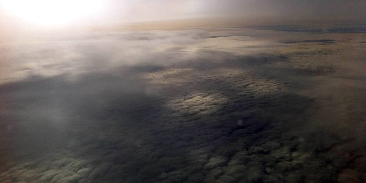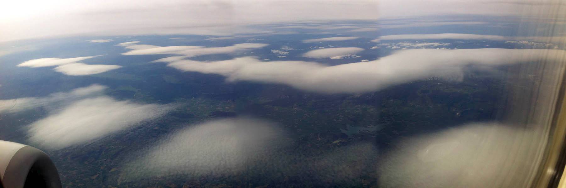 | One more lenticular panorama as we approach a layer of cirrostratus. | At the top of the cirrostratus layer a subsun becomes visible. | A layer of lower stratus below a thinning cirrostratus. | Sun dog. | More views from high above a layer of stratus. | |