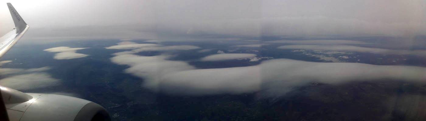 Eventually we moved on and headed for the airport. We got there just after 2PM and dropped off the car. There we relaxed until boarding. We took off 15 minutes late due to 'airspace restrictions' apparently. We were expecting bad weather near the UK end of the flight too. After launch we flew past lots of lenticulars thaqt were all around us, until we vanished into cirrostratus cloud. Then nothing much was visible until much further North. (I must remember to go on the right hand side going home next time. There was a great view of the Pyrenees for those people.) Later in the flight we started to descend back into clear air. There was lots of lower cloud but there were gaps and I got a view of the Isle of Wight and nice views across the Home Counties and Northwest London. I even spotted Sunny Hill Park and Costco. We only landed a few minutes late in showery conditions. But I was glad to be home, even when it was pouring down on the M11.