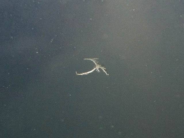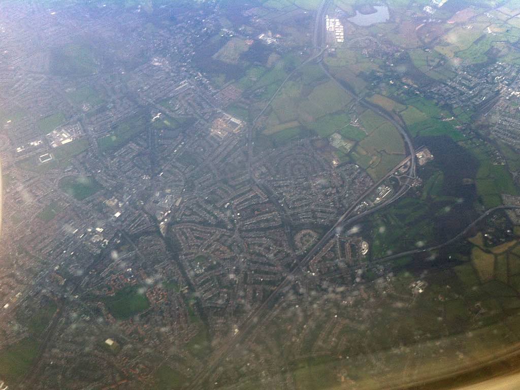 | The Isle of Wight. | Another subsun. | Ice crystal on the window. | Cloudscape over Southern England. | Views of my home patch. Right under the aircraft is Sunny Hill Park. Edgware and Stanmore are in the shot as the M1 snakes its way up from J2 to J4, and past Aldenham and Hilfield Park Reservoirs and Costco to Watford in the background. | |