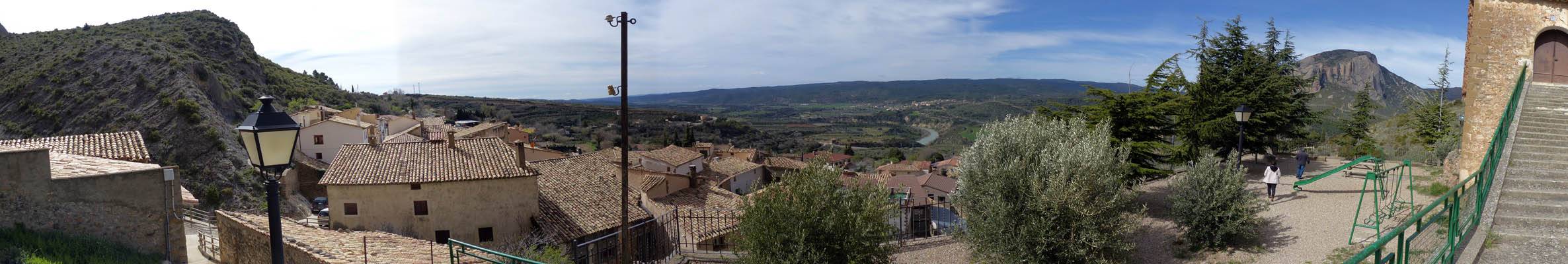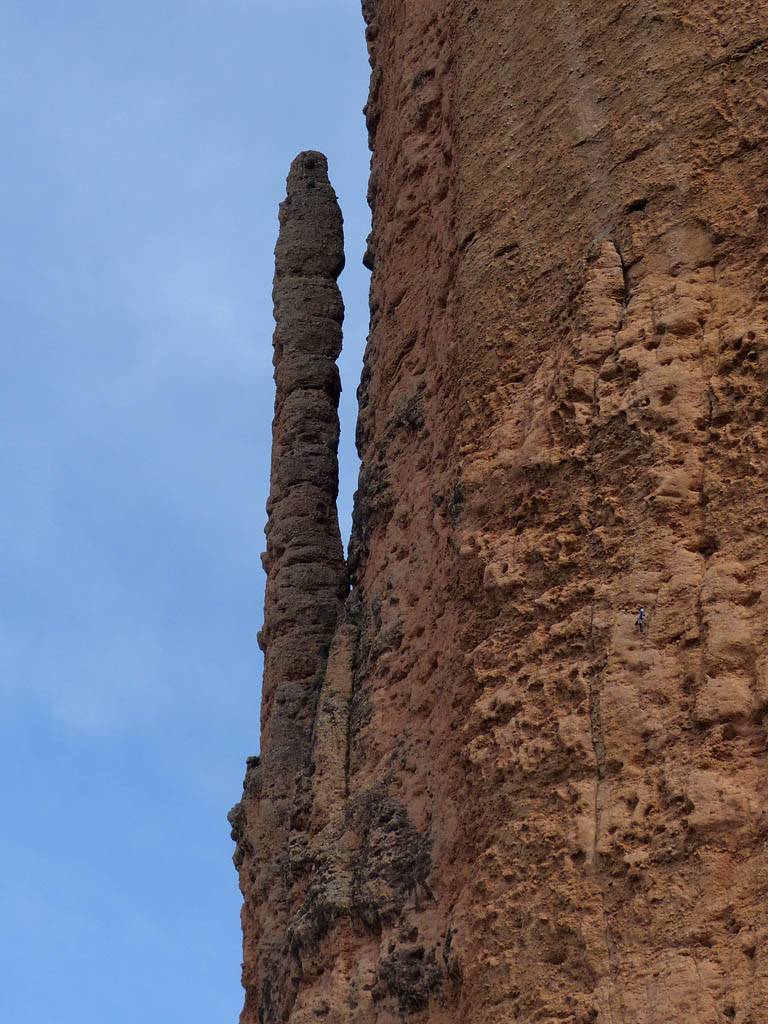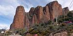 I woke up early so was packed and sarnies for the trip home made by breakfast time. We watched the Formula 1 on the big screen as well as paid up and checked out. (I put the luggage into the car during a safety car period.) After the race around 11AM'ish Derek and I decided to move. We left Santa Cilia and headed for Riglos and the sandstone cliffs. It was much nicer weather than last year. The cliffs really do almost glow in the warm sunshine. There were lots of rock climbers on the cliffs. That explains why the car parks were full. We parked on the side of the road ok though and walked up through the village to the church and enjoyed the views for a while.