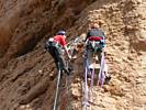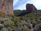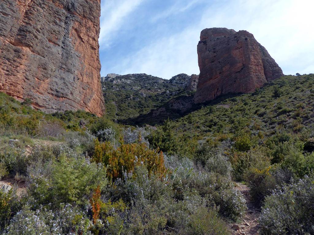 | Looking back down the path above Riglos. | More views of the roick climbers. | Arty view of the cliffs from a narrow Riglos alley way. | Walking back down to the car. | ||