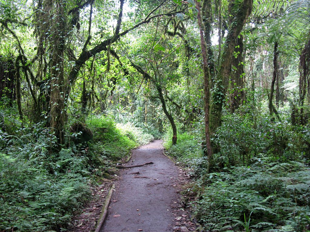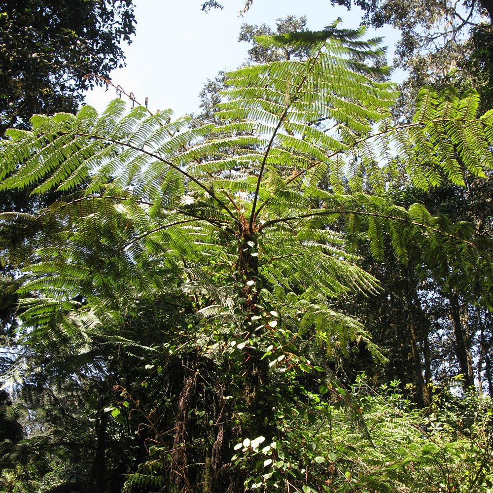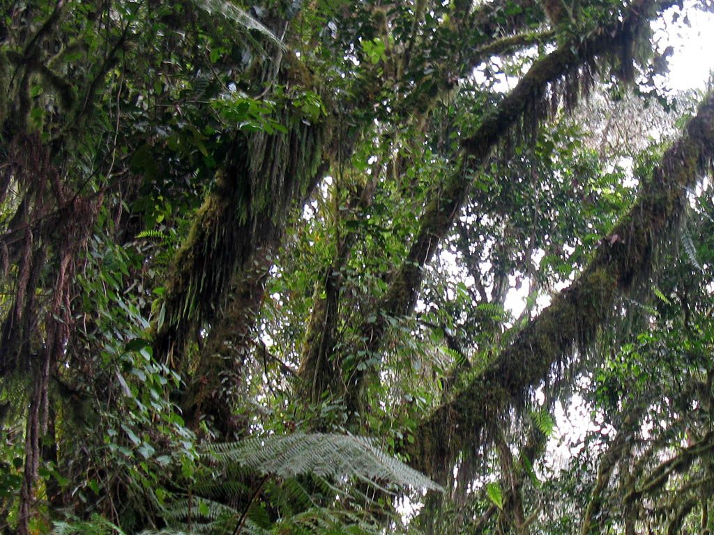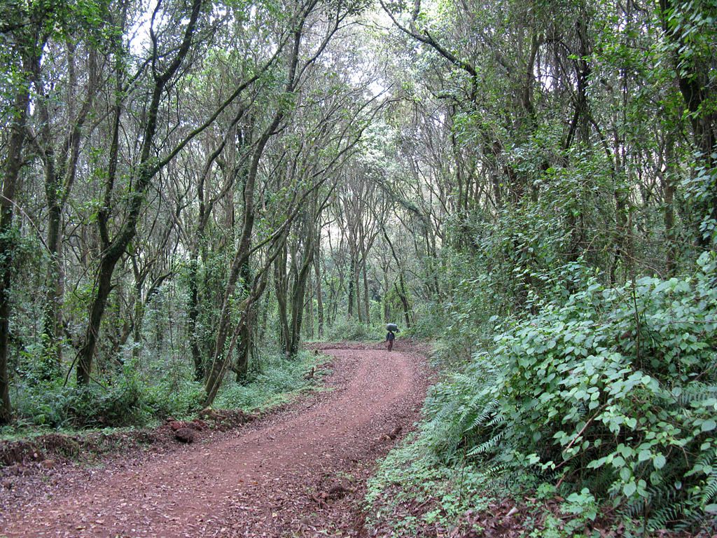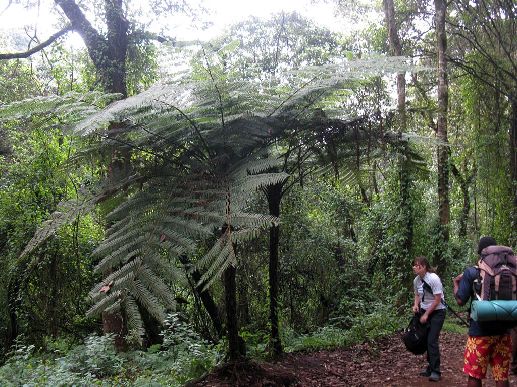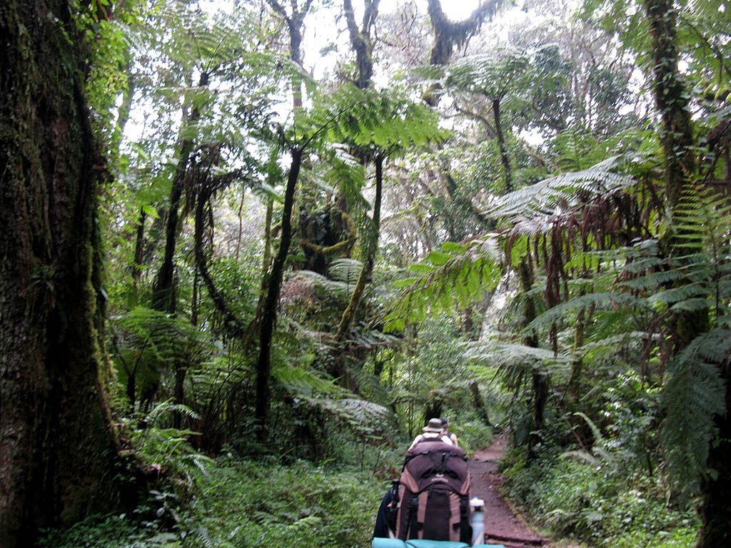 Going through the start gate and a nice 4 wheel drive track uphill. | Vieds of the montane cloud forest on the lower slopes. | Tree fern. They look straight from the Jurassic! | The cloud forest continues. |