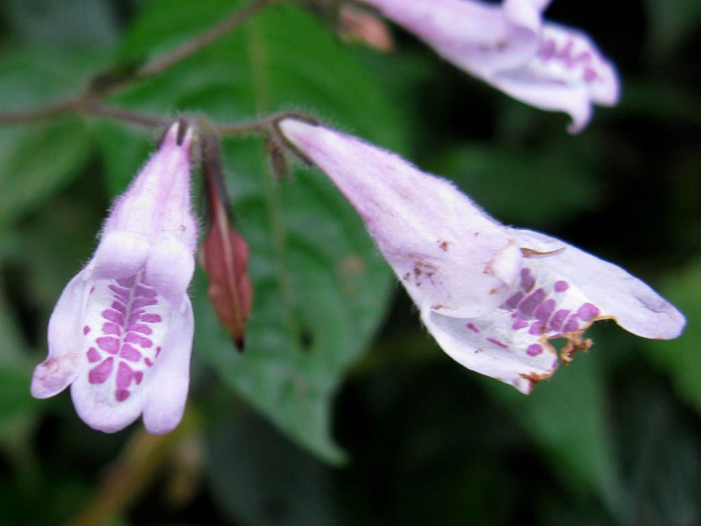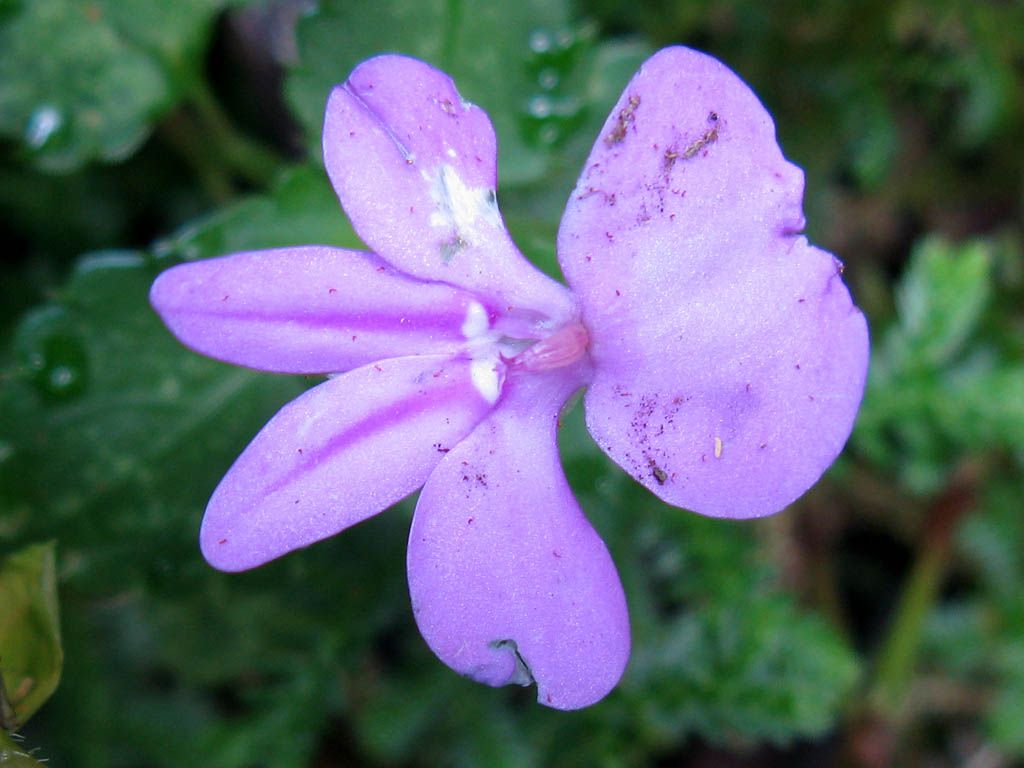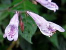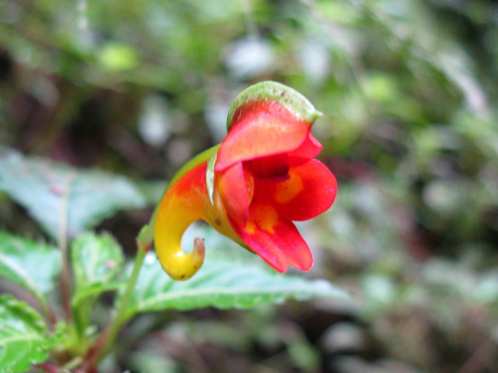 An Impatiens pseudoviola flower. | Dierama pendulum flowers. TODO: Verify as not sure. | We found a nice spot to stop for lunch. We had been given lovely packed lunches too. | Another tree fern. |