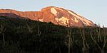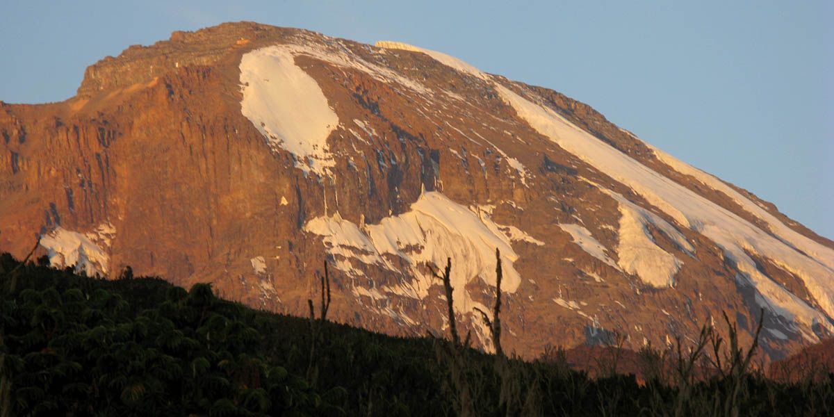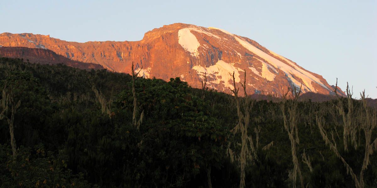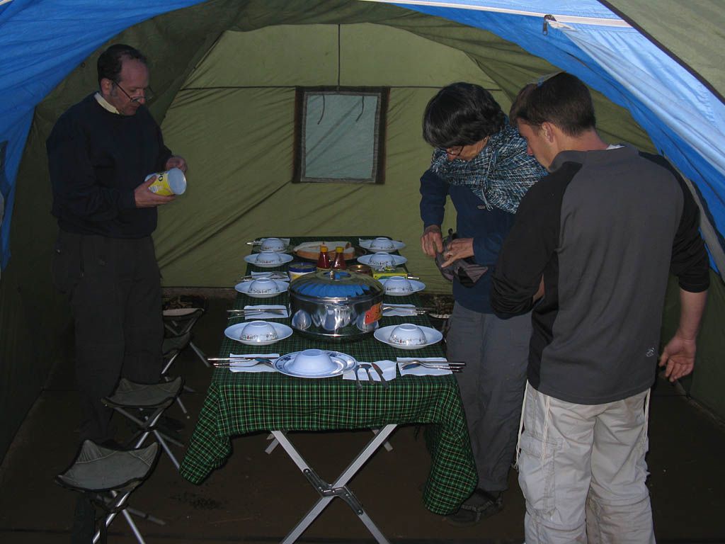 Then with a glorious view of the summit, Kibo and its tropical glaciers, we had tea and settled in. I was tired but happy. It was also a pleasant surprise to be given a bowl of hot water and soap to refresh myself with. Then we had a delicious supper back in the dining tent, while Kibo glowed a vivid red with the sunset. After dark the night sky stars were glorious even with a half moon present. My LED torch and headlamp both did a great job in letting me find myself around in the pitch dark (no street lights up here!). By 8pm I was off to sleep in a cosy sleeping bag as it got rather chilly outside.