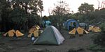 An exciting first day then, and a good start to the trek. One of the things en route I noticed was how friendly everyone is. Whenever any porter overtook us we almost always said 'Jambo!', or hello, to each other. Same when overtaking resting porters. Other climbers were also friendly, since we all had the same purpose in mind. So it almost felt like a club environment. The bowls of warm water and soap at the tents and the sit down loo tent were also great bonuses and much appreciated. This theme continued throughout the trip which just added to the great atmosphere of being on such a famous and challenging mountain.