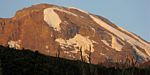Cool! We even have a sit down loo tent. A luxury compared to the regular pit latrines everyone else has to use. | The summit lit up by the sunset. We lower down are already in shadow. |