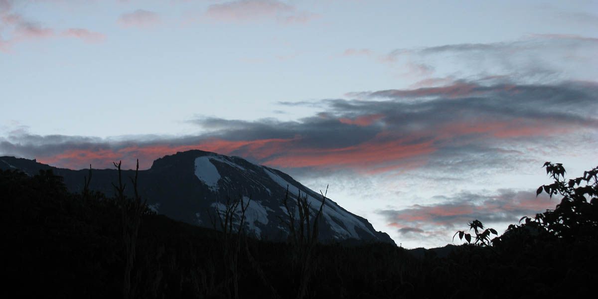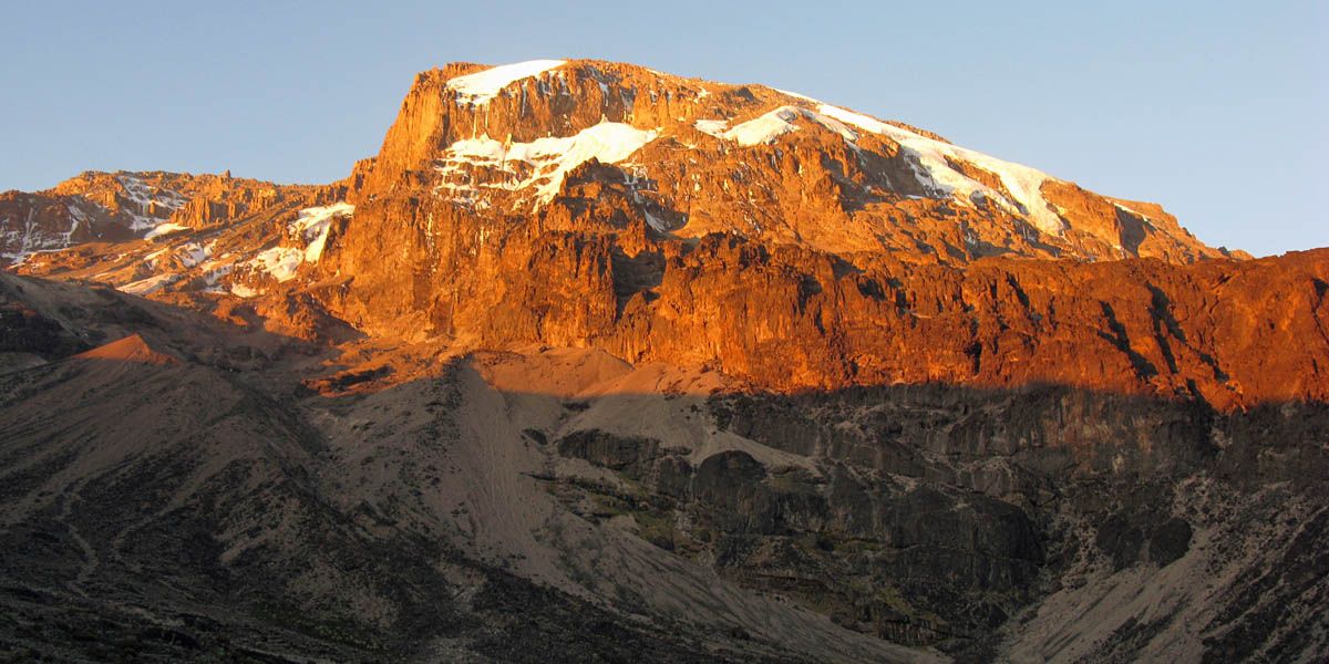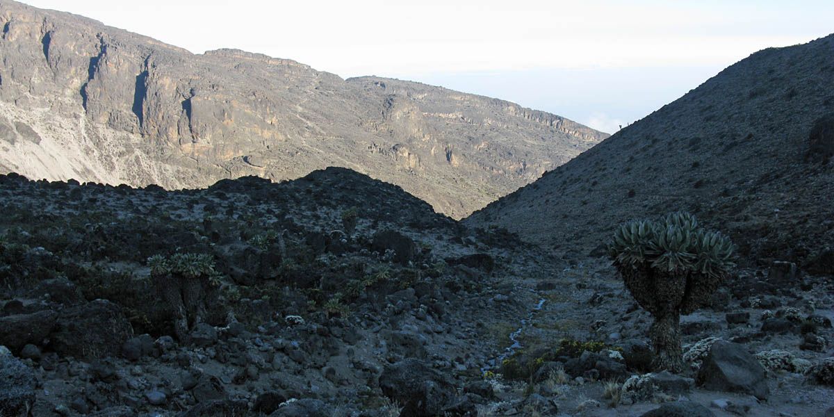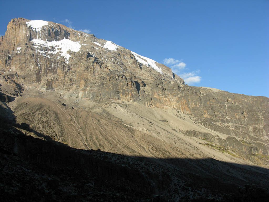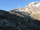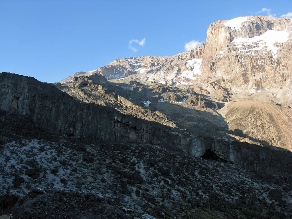 Looking up at Kibo and its glaciers as we continue to descend. | Almost at Barranco campsite now. |
