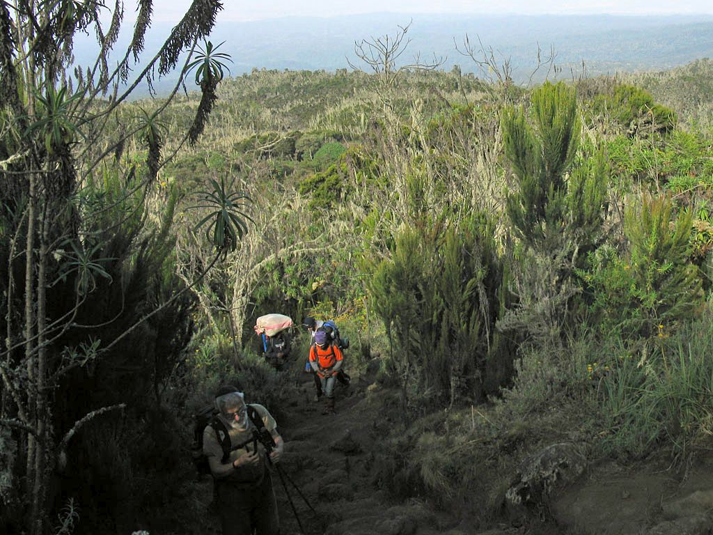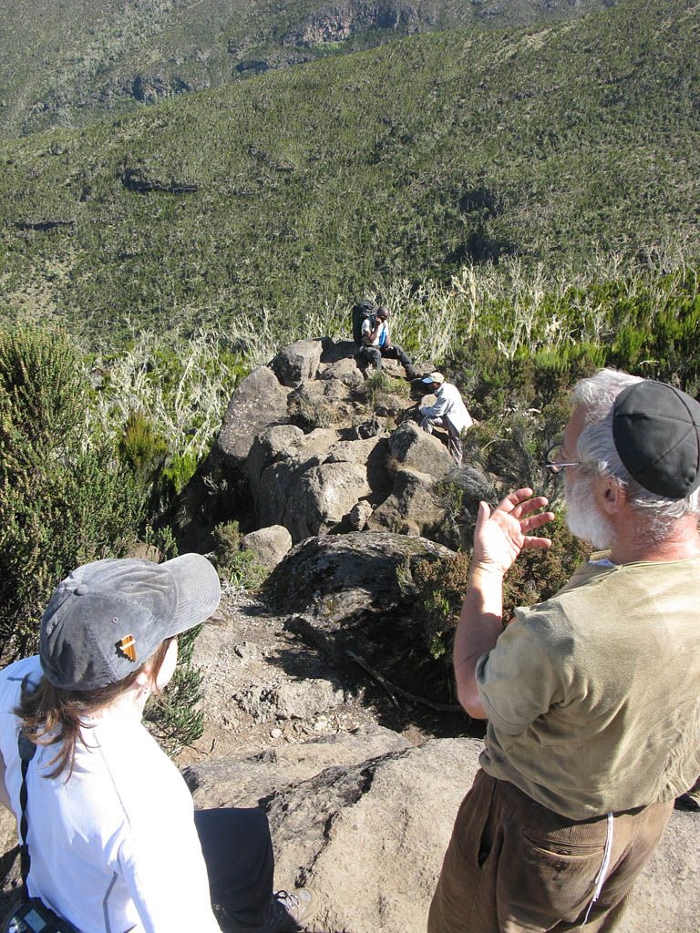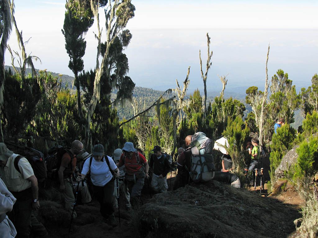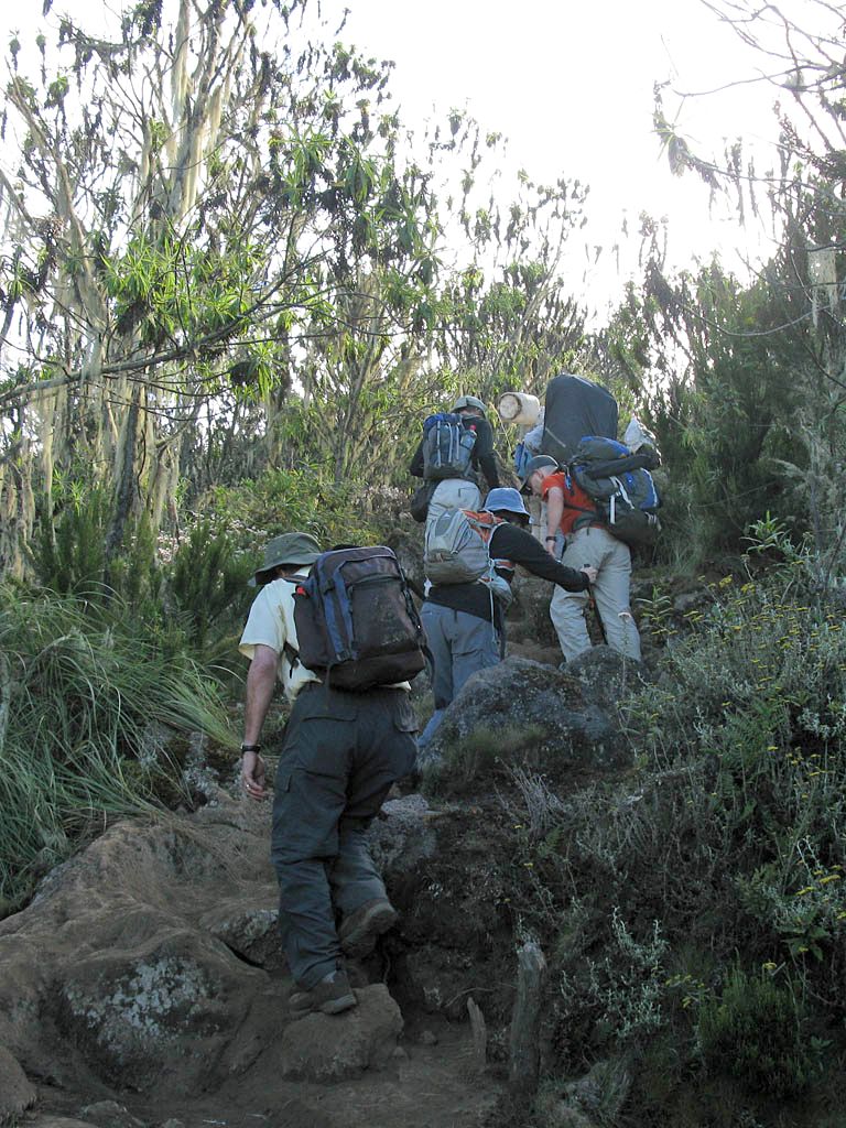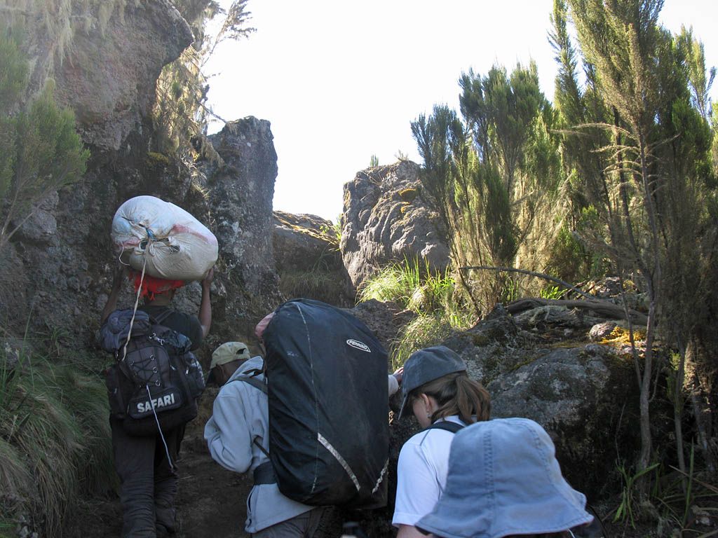 There had been extensive discussion over the best plan for today. In the end it was decided that in order to have an easy day on Friday to allow for plenty of time to prepare for Shabbat, we would have an extra long day today. The porters weren't too keen on going all the way from Machame to Barranco in one day (the normal process is to stop at Shira Caves for the night before continuing on) but a promise of an extra tip was enough to persuade them. So a long punishing day ahead, but that would leave us two easy days and a rest at high altitude to leave us in good shape for the summit.