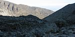 Sun set as we arrive at Barranco. | Looking down the valley towards the clouds below in the deepening twilight. | My view from the tent before I sleep off an exhausting day. |