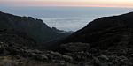The way down from Lava Tower ahead. | Looking back at Lava Tower as we descend. | Descending into the Barranco valley and first view of Barranco camp site. | Tree groundsel plants. | Continuing the descent as the sun gets low. |