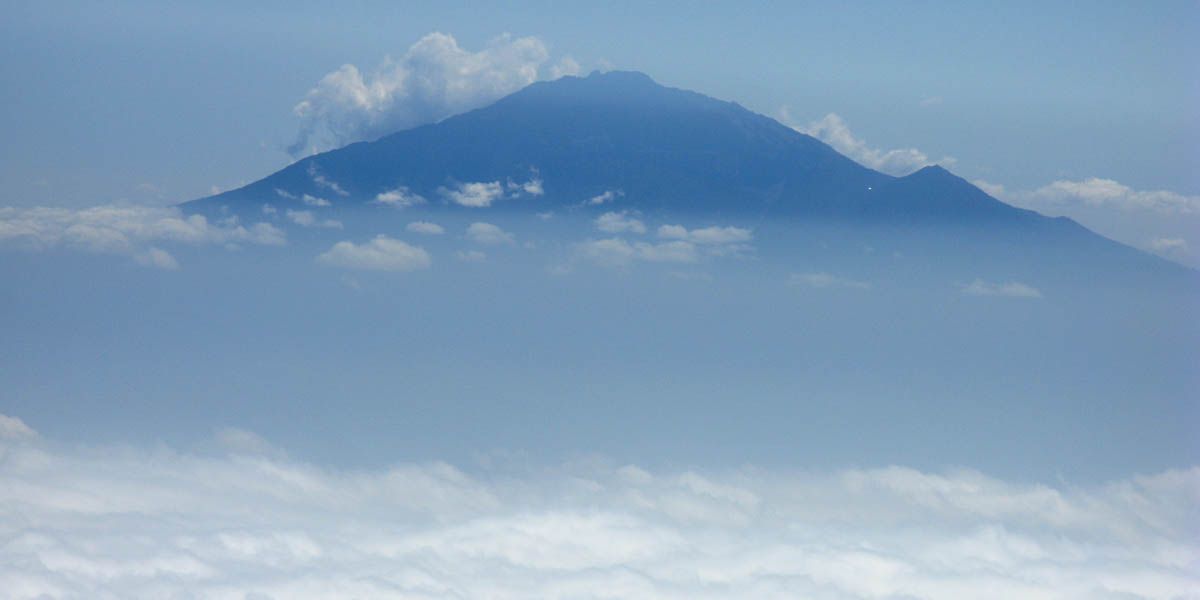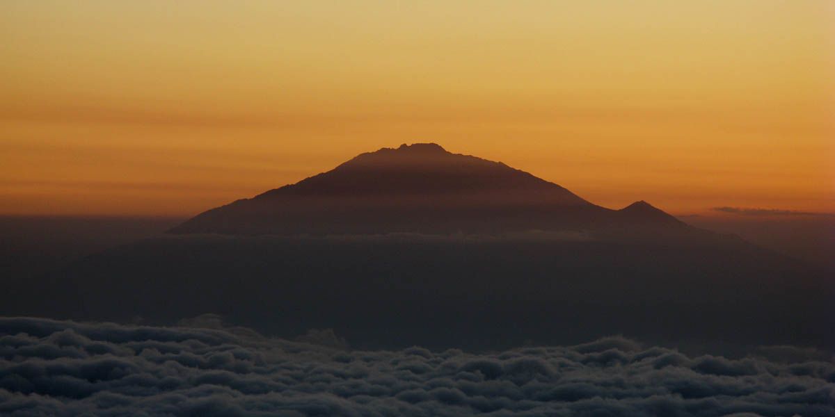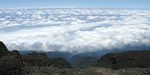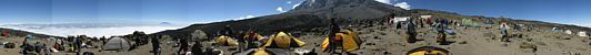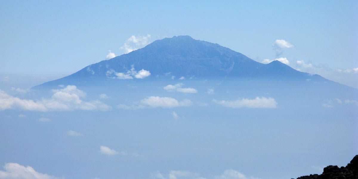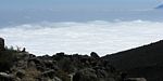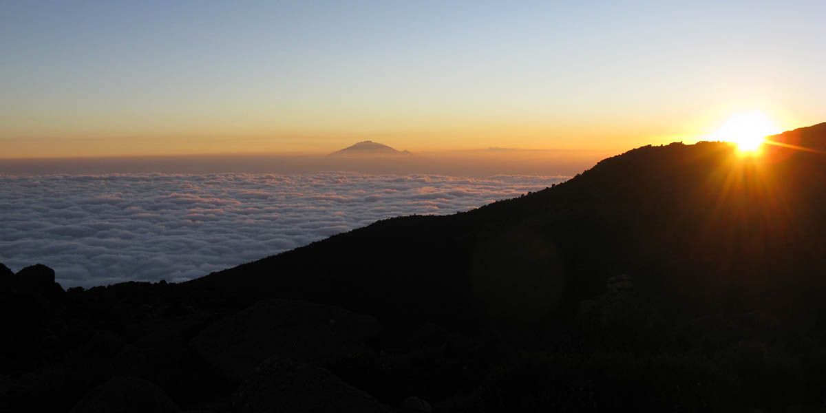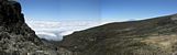 360 degree panorama of Karanga camp site. | Another irresistable view of Mount Meru floating on the haze and the clouds. | Another view above the clouds to the left of Meru. |