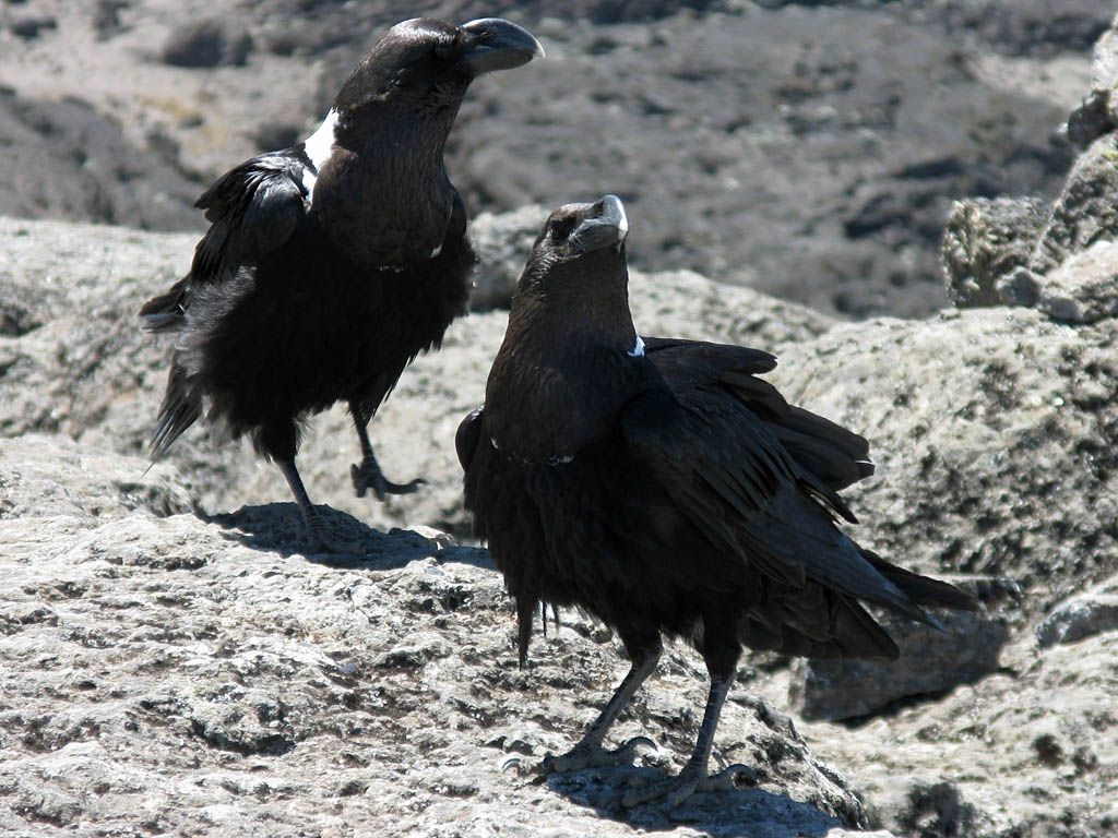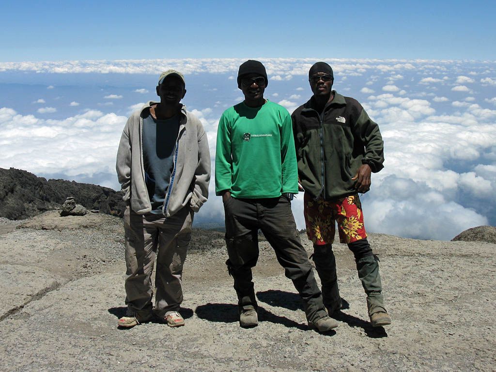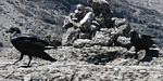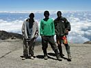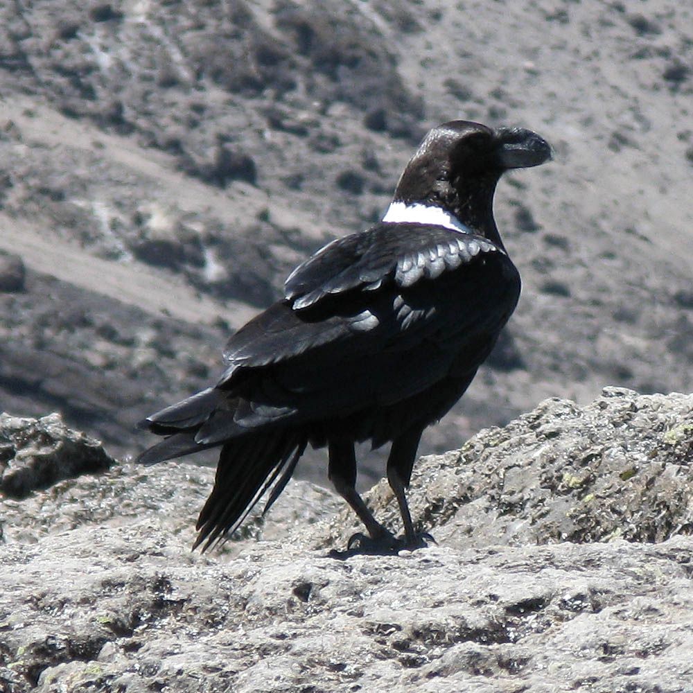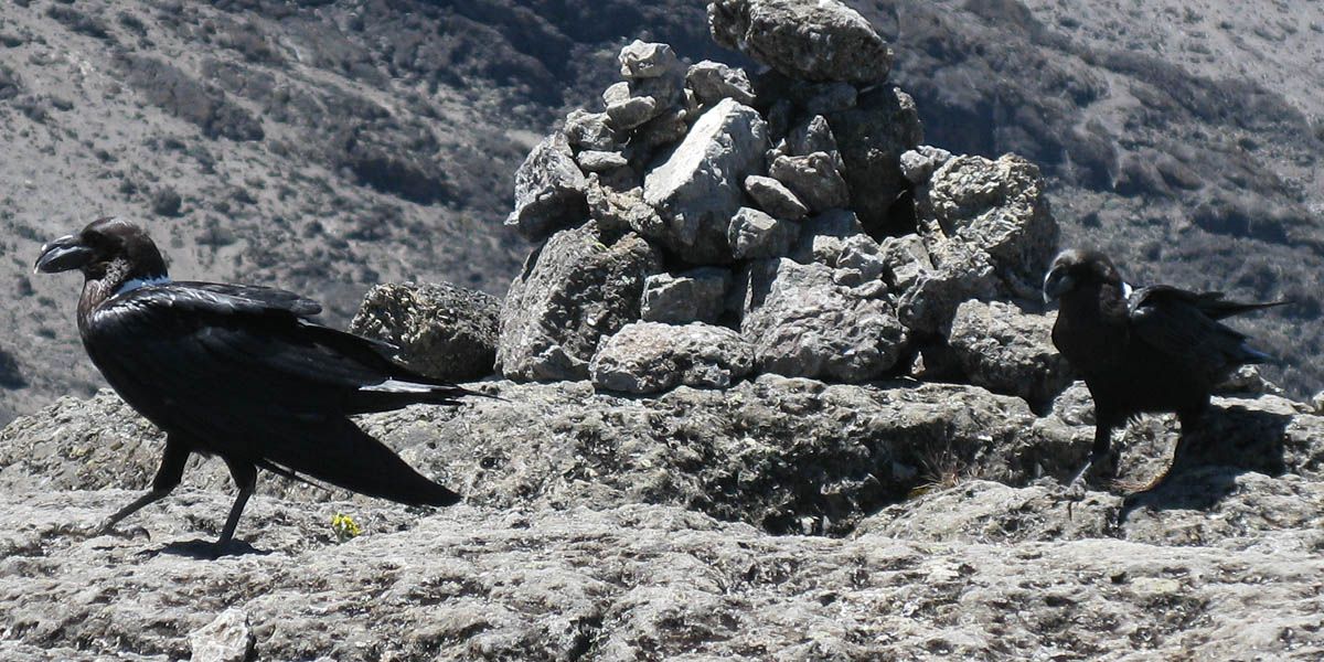 White necked ravens playing nearby. | A group shot of all 8 of us plus 3 guides at the top of the Barranco Wall. From left to right: Anne, Misha, Godbless, William, Boaz, Israel, Bob, David, Yedidya, Susan, Mike | The three guides: Godbless, William and Israel. |