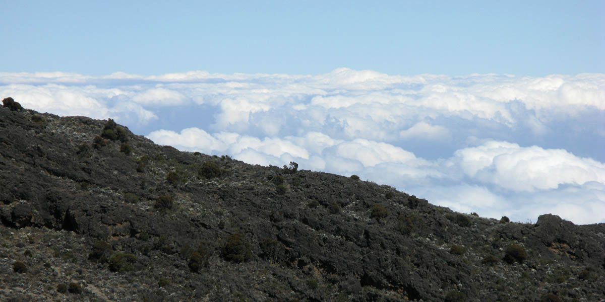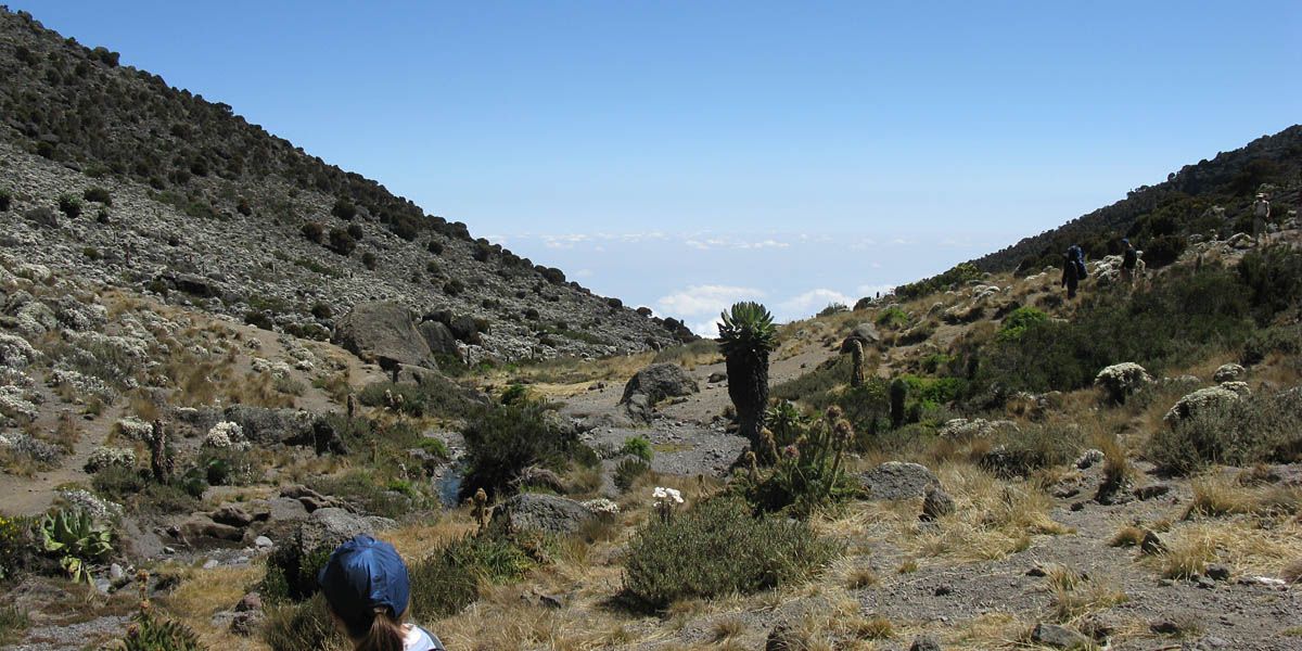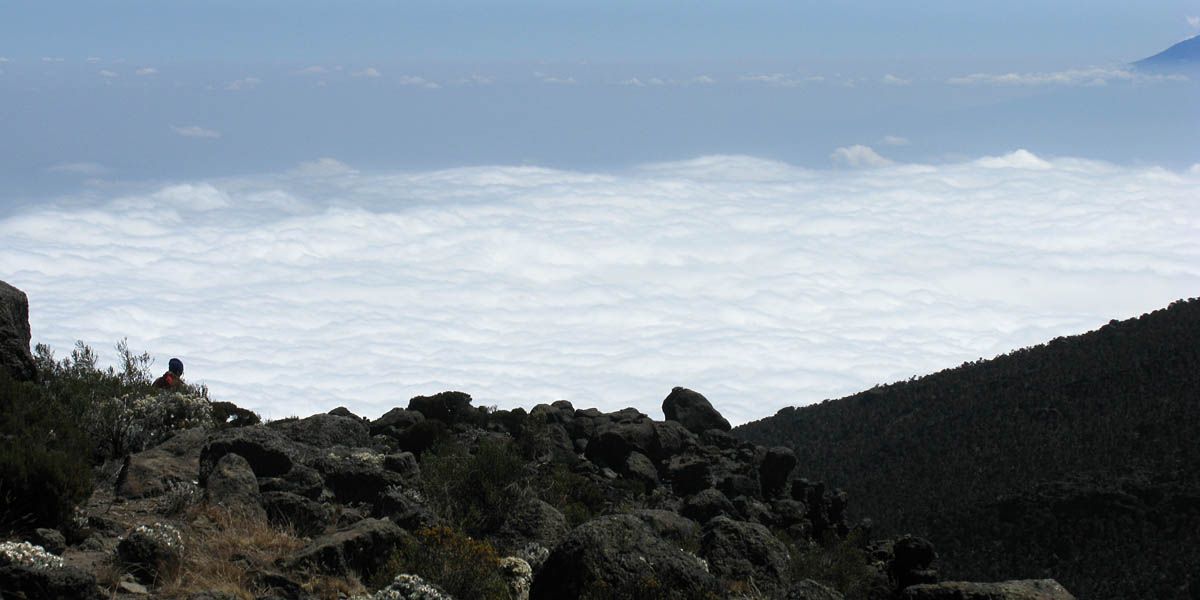 Another note at this point is how the weather so far has been perfect. Clear sky and light winds so far on the trek. Just the occasional small scrappy mountain cumulus bubbling up here and there at all levels including at the summit of Kibo. I was hoping of course that conditions would continue like this for the rest of the trip!
