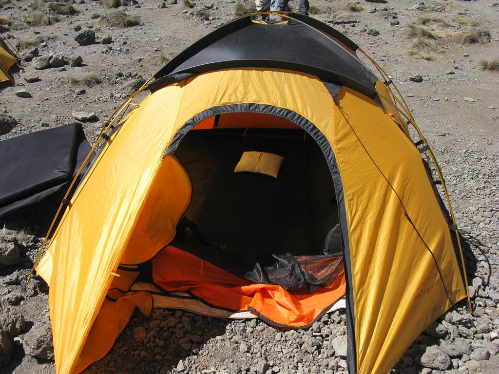Arriving at Karanga Camp. A nice easy 3-4 hour day after yesterday's 9 hour epic. | The view to Kibo from the camp site. | My tent set up at Karanga. |