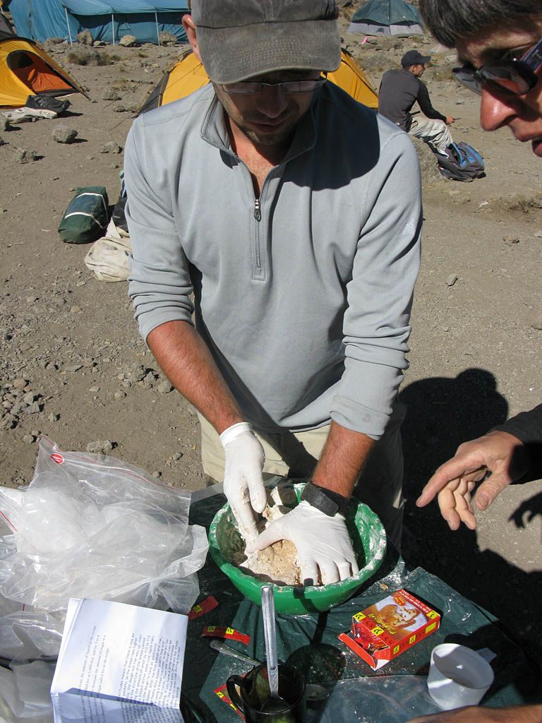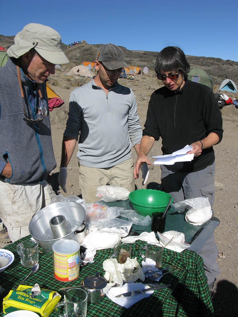 At 4pm Susan got her wonder bowl out. Her plan was to bake some special Kilimanjaro Challas for Shabbat. Misha helped (or rather led) while Anne and I documented the process. Once the dough was prepared it was stored so that it could rise up overnight and during the hike to Barafu Camp tomorrow, where the Challa preparation will be completed and baking will take place in time for Shabbat.