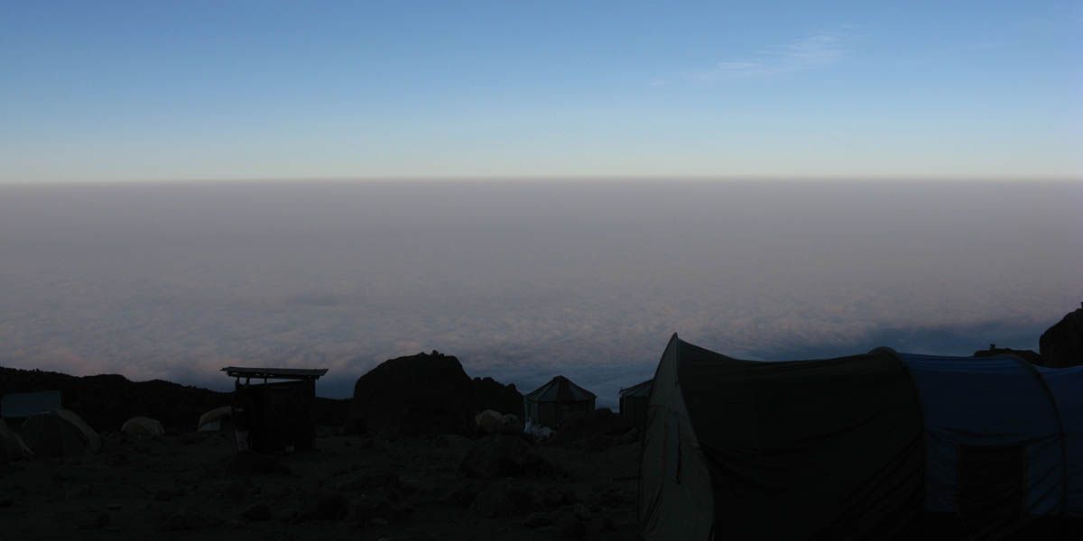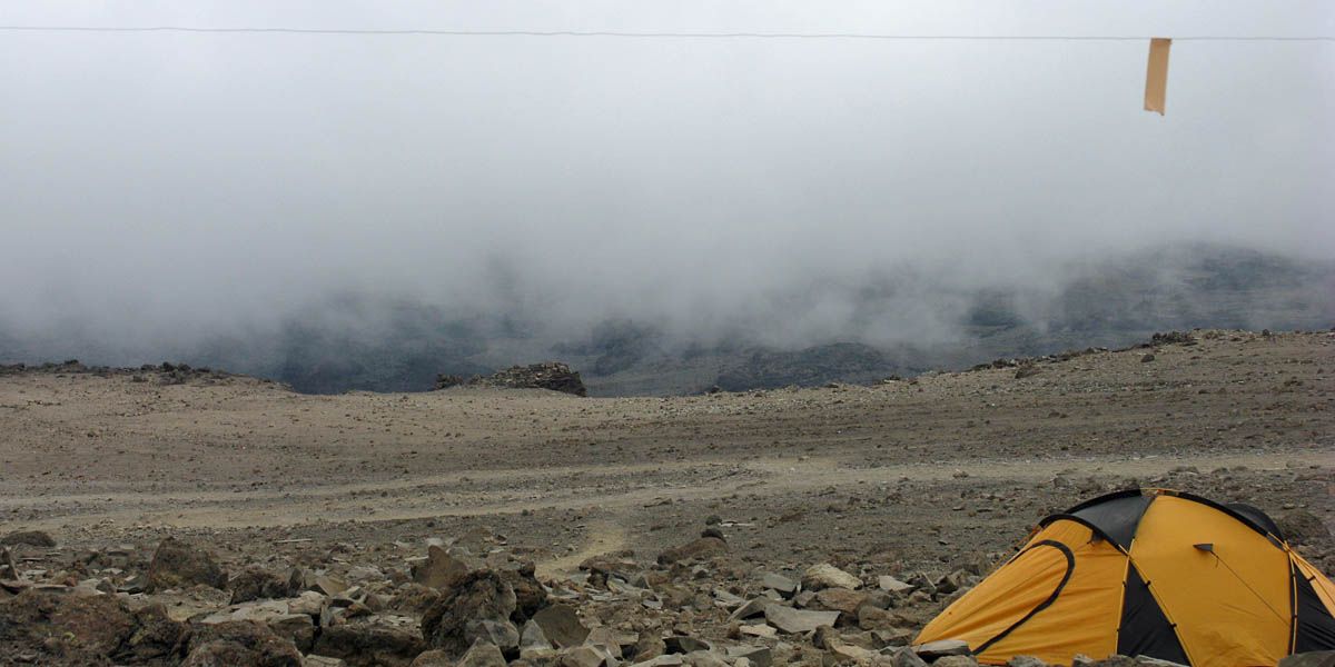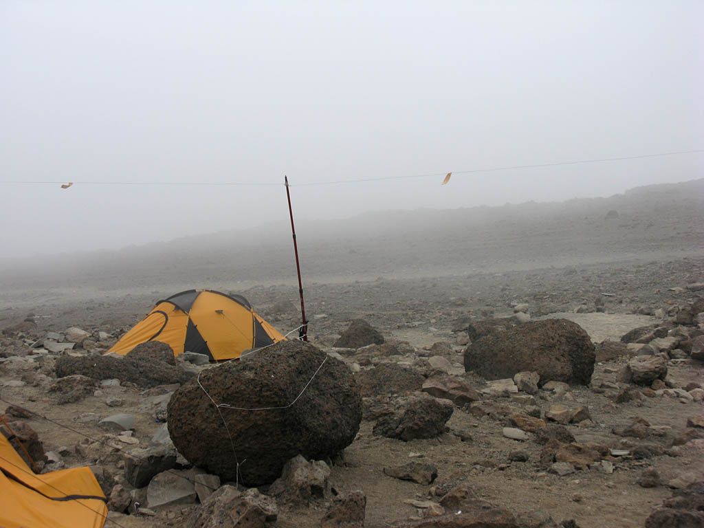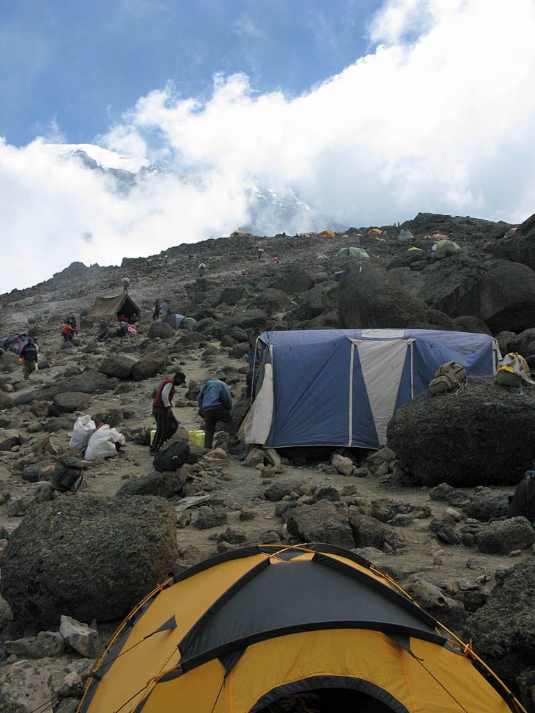 Inside one of the huts was a sign in book. So we signed in there and then. Already I have seen so many wonderful sights and had such a great experience that whether I make it to the top or not the trip is already worth while. This has been my mentality already from early on in the trek, with the summit being the cherry on the icing of a spectacular cake. After signing in we returned back to the bottom of the camp and waited for our tents to be erected. Meanwhile all around us large clouds were bubbling up and drifting across the camp, swirling above, below, around and straight through us! The rapidly changing and dynamic cloudscapes were amazing! Soon enough the tents were set up and I was shown to my 15,000 foot bed for the next 3 nights.