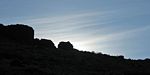 After Shacharit, and while waiting for breakfast I took a slow stroll uphill on the petrified lava flow. As I set off I saw a soaring bird that looked different to the White Necked Ravens. A porter confirmed my suspicion that it was a Lammergeyer, a rare and large vulture that is resident on the slopes of Kilimanajaro. Up on the lava flow, the Lammergeyer, having soared nearby, glid just a few feet over my head before vanishing down into the lee of the ridge. Cool! If only it hadn't been Shabbat and I'd had my camera on me... I wandered around on the lava flow for a while longer before returning to camp.