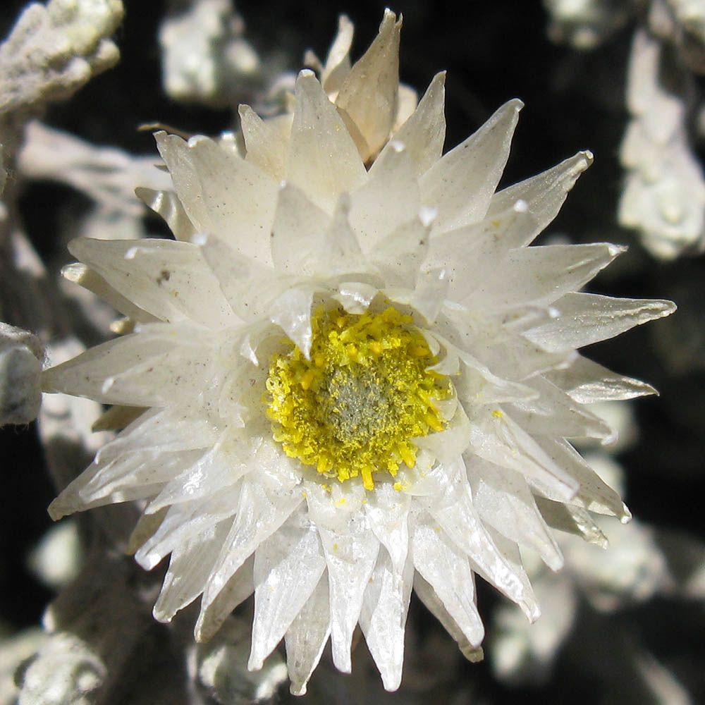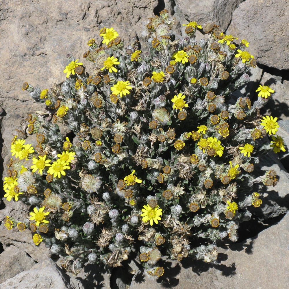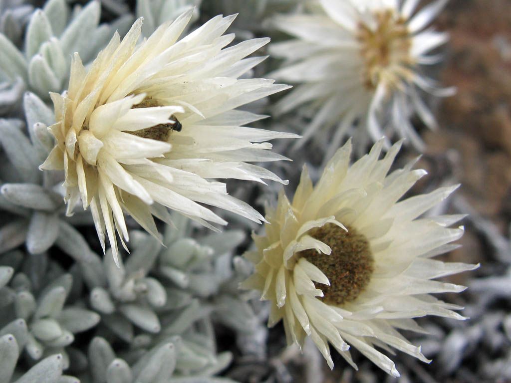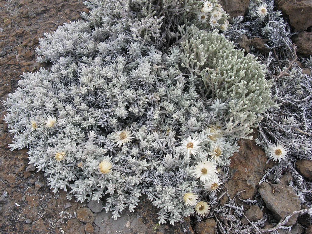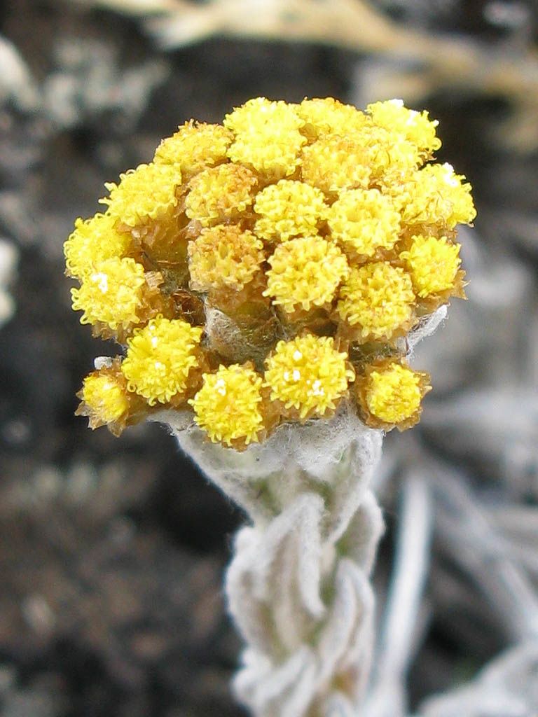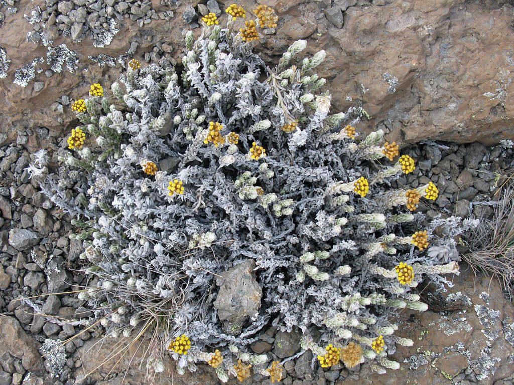 Onwards and upwards over fields of boulders. | Macro shot of a Helichrysum citrispinum Everlasting flower. | Onwards and upwards continued. | As we get higher and higher the landscape gets ever more rocky and primordial with just a few small everlastings and tufts of hardy grass around now. |