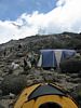 The camp site continues to take shape among the rocks. | My 15,000 foot bed for the next 3 nights. | Life in the clouds is grand. As they sweep through the camp they also form some spectacular cloudscapes. |