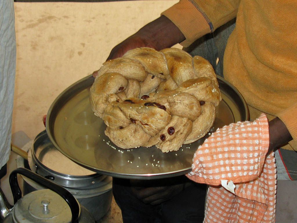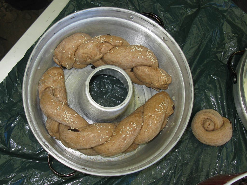 Challahs placed in a wonder pot ready to be baked on a camping stove. | Freshly baked Kilimanjaro Challahs! Yum! |