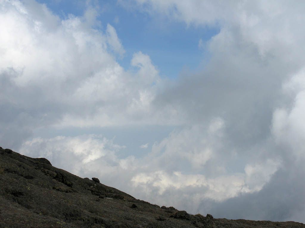 At 10:30AM, after I had returned to camp, we had a Shabbat brunch, during which the second Challa was devoured. After that I felt so dozy that I had to have a lie down for a while. After that I took another slow wander back up the lava flow all the way to the Barafu Huts and the start of the path to the summit, before doubling back the way I came in time for the Seuda Shelishit planned for 3pm. The clouds were building again and I watched the wisps funnel past and all around me and over the ridge, as well as observing the ravens having fun all the way to the top of the camp. I noted how much shale there was at the top end of the camp, and also got a brief view of a Four Striped Grass Mouse scuttling along in a sheltered crevice in the lava before vanishing into a crack. I then had another rest, as I felt tired and washed out today. Thank goodness for a nifty day of rest before tomorrow.