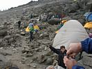 At 3pm we had thr Seudah Shelishit as planned. I wasn't so hungry so soon after such a big meal earlier but it was still fine and tasty. We then played cards until 6:20pm. I then had one hour to get my gear ready for tomorrow's summit attempt. Meanwhile outside, cloud was less extensive today, and after sunset the wind appeared to have changed direction. We now appeared to be directly in the lee of Kibo, and some vicious winds started to sweep down through the camp site. Brrrrrr! I promptly put on my waterproof overtrousers as a windproof layer and my balaclava. Conditions were rather horrid now, and we sheltered in our tents until 8:30pm. My gear was now ready except for water.