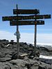 The ultimate goal of the whole trip achieved. Uhuru Point! The sign itself, and me in front of the sign. | Two group shots. From left to right: Susan, Boaz, Yedidya, David, Anne, Misha, Bob and Me (holding a hiking stick up in triumph)! |