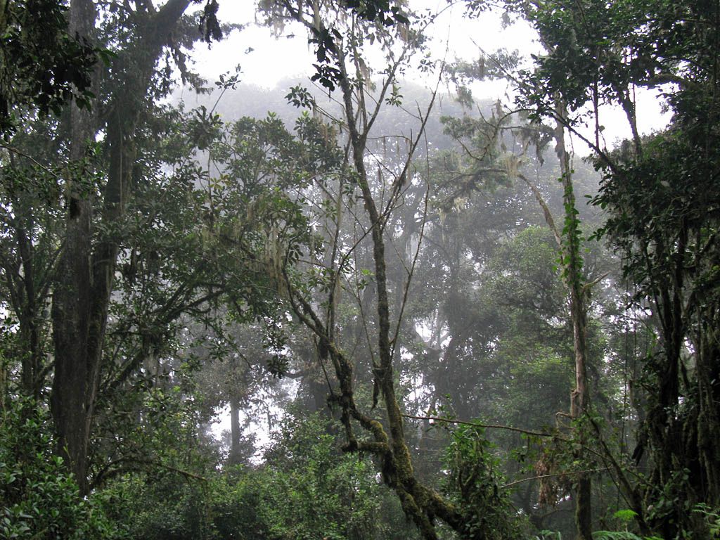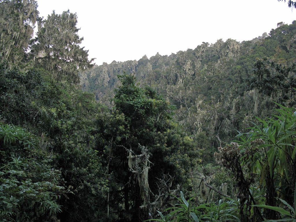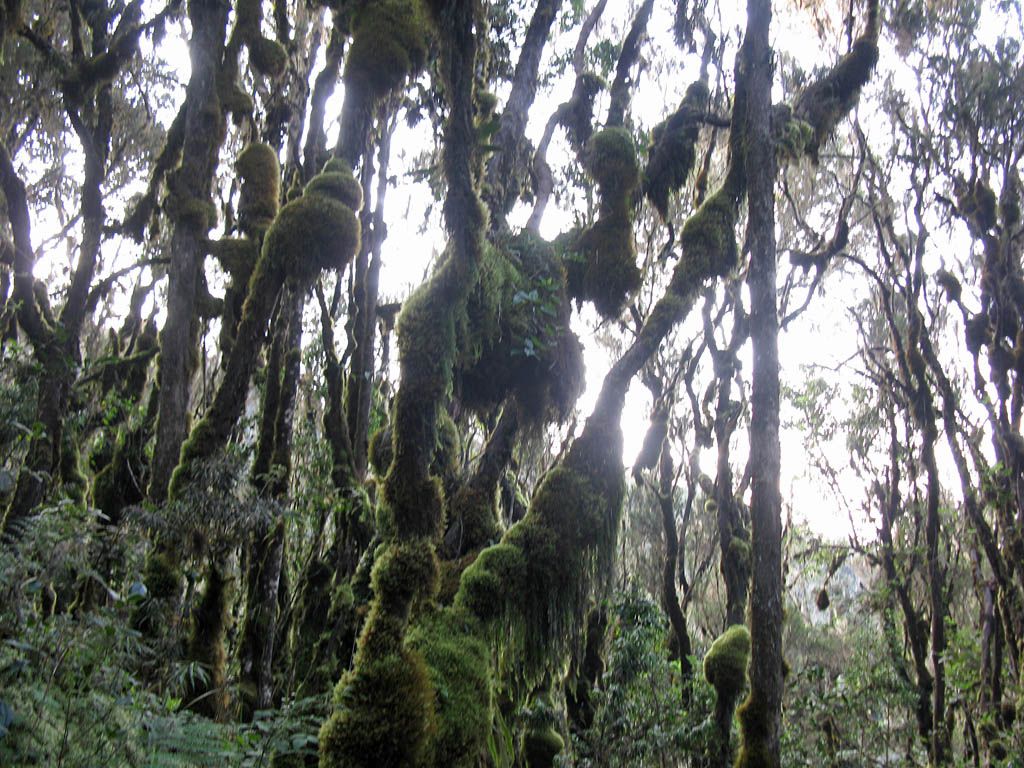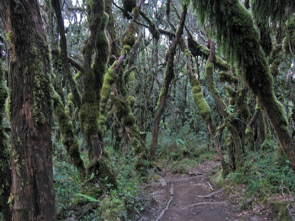 We got up at 5:30AM as planned, and packed everything away. It was goodbye to the tent for the last time as it got packed away to be taken off the mountain. We had breakfast at 6AM as the dawn light brightened, and started walking at about 6:40AM. Light levels were very poor but the forest trail was indeed very pretty. Just five minutes out of Mweka Camp the tree line was abruptly reached, with the giant heathers being swapped for increasingly large trees. Despite the poor light levels I managed to take plenty of pictures, including macros shots of flowers. Challenging in the low light mind you, and a number of them failed to come out or the flash, when used, washed them out too much. Below is a selection of the ones that did come out atleast.
