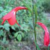 *TODO* Identify | A Gladiolus watsonides flower. | An Impatiens pseudoviola flower. | Descending past pretty moss covered tree trunks. | *TODO* Identify | One of the bridges taking the new path over the old worn out (into a trench) path. |