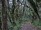 Soon enough we descended into the cloud. From there all the way to the end it was foggy. Before long it started drizzling, and lower down it turned into moderate but persistent rain. So now the true nature of those clouds we saw gathering below us was revealed - rain clouds. Given it is the dry season, this is a good example of Kilimanjaro creating its own weather, and why the montane cloud forest is so lush. The trees on the southern slope were also particularly tall and dense in places. I also noted an increase in birdsong but didn't spot any of them as they were all hidden in the trees and fog. The lower part of the trail was very nice, having recently been refurbished. Every now and then we crossed over a bridge over a trench, which is the old path having been worn into a trench by so many people pounding it over the years. I'm glad they refurbished the trail before we walked it!