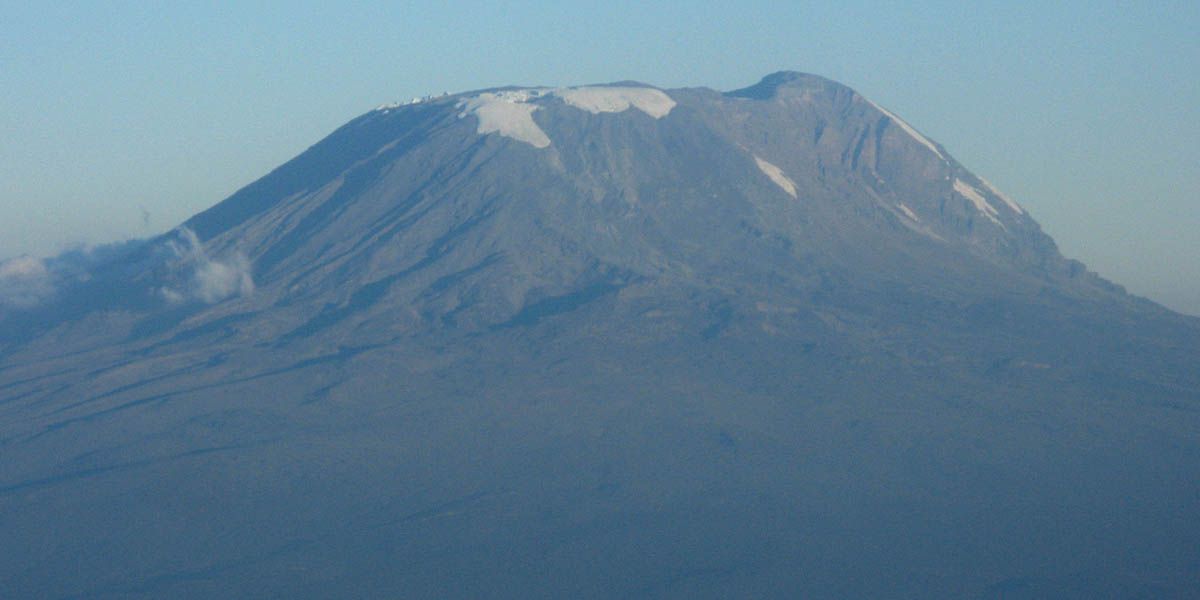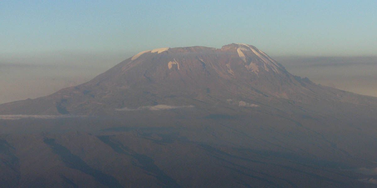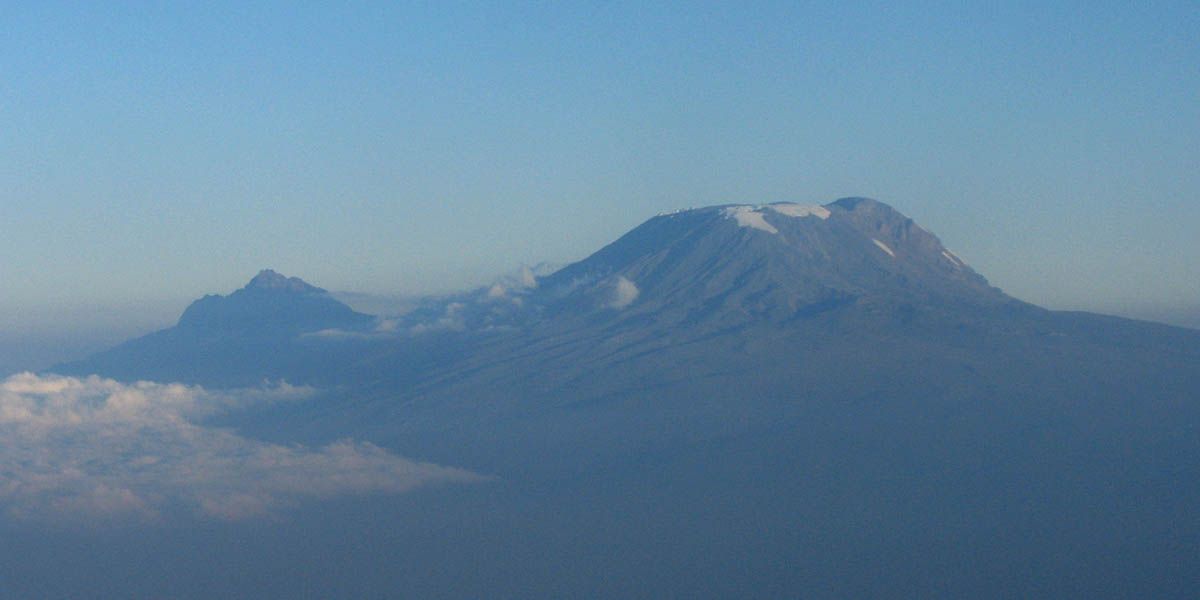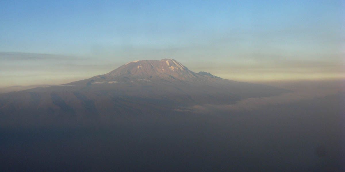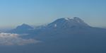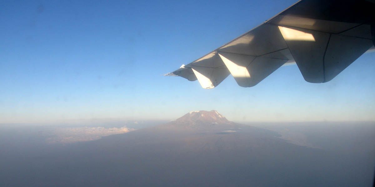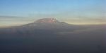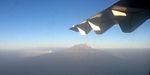 Looking at Kilimanjaro from the Northwest. The secondary peak to the left is Mawenzi and the main peak is Kibo. | More views of Kilimanjaro as we fly round past the Shira Plateau to the south side before landing. |