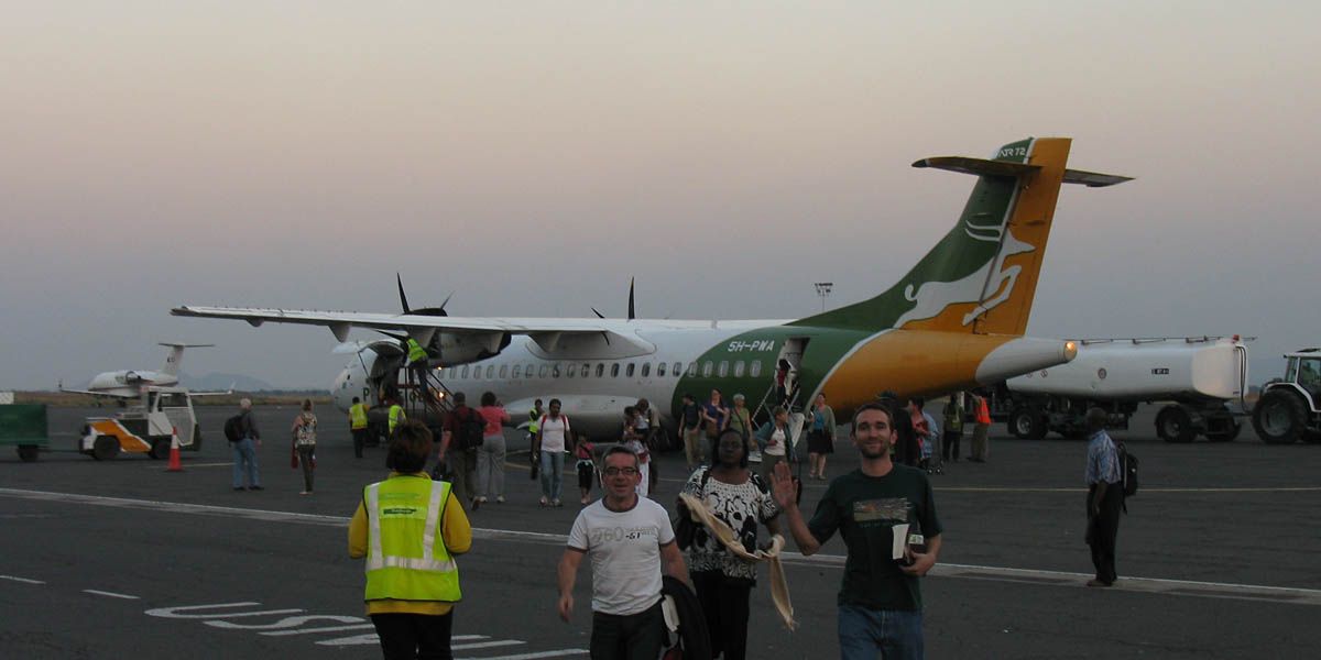 Eventually we got onto a Precision Airlines Turboprop. What a cool aircraft! Much more fun than a regular jet. We got a great view of Kilimanjaro as we cruised in at 17,000 feet, just below the summit, as the sun started to set. Oh to have been a few thousand feet higher to peer into Kibo crater itself.