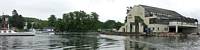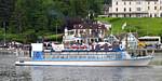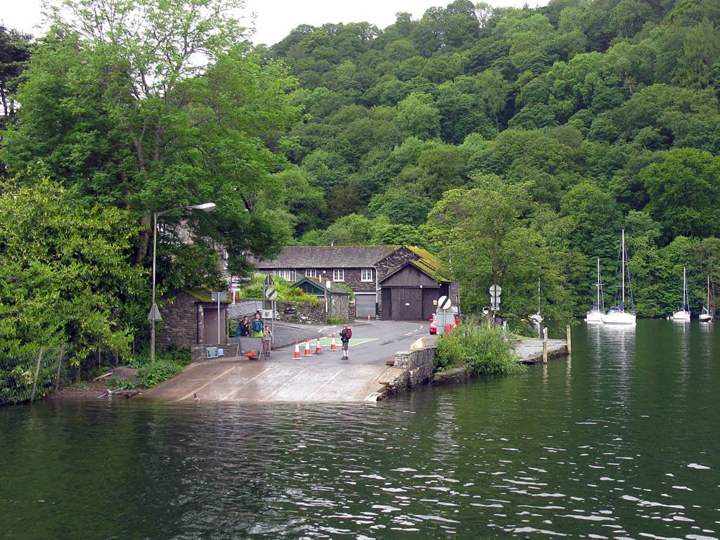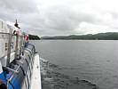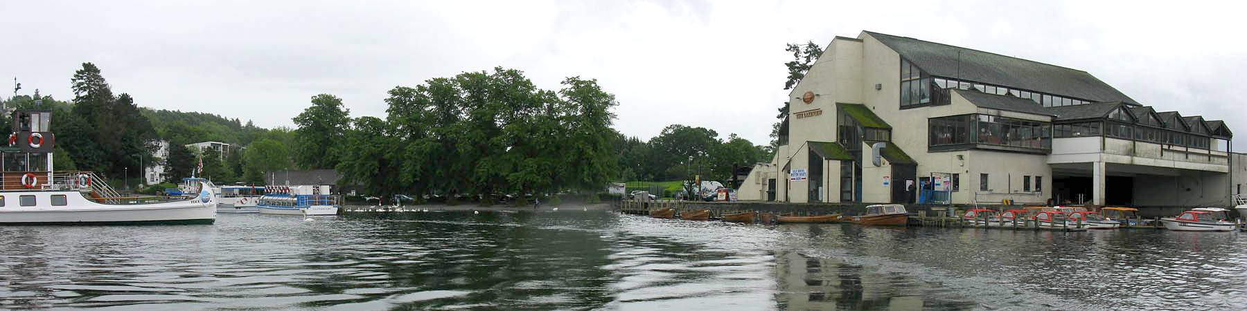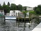 Rounding the back of Belle Isle and Bowness coming back into view. | One of the other cruise boats leaving as we return to port. |