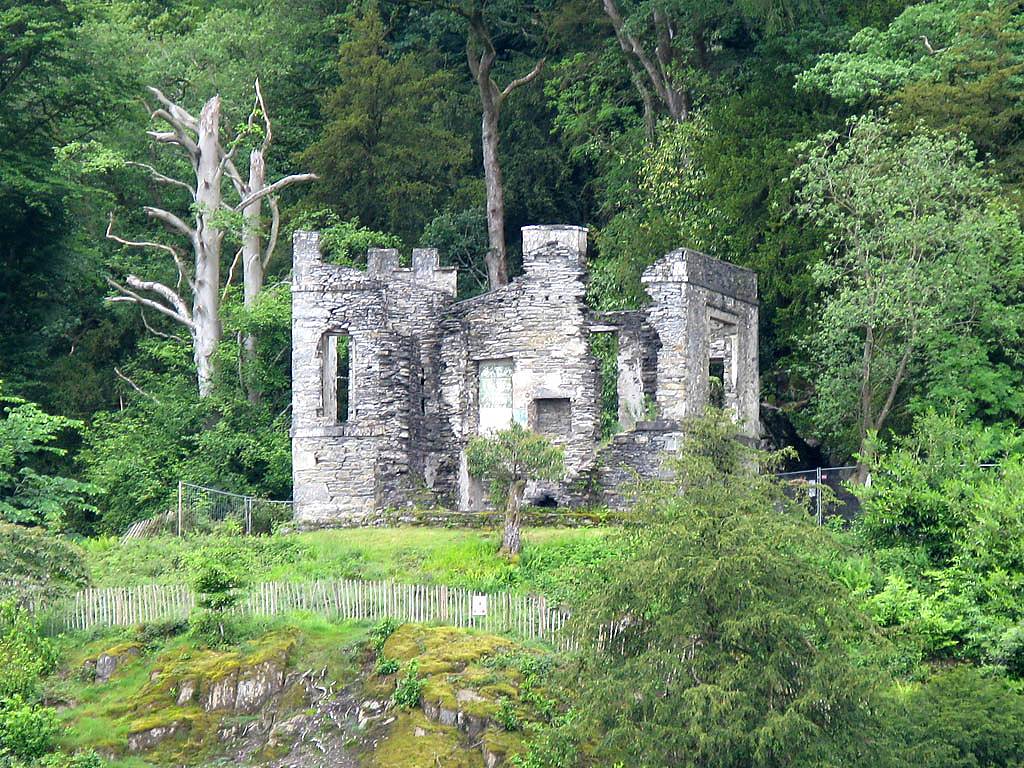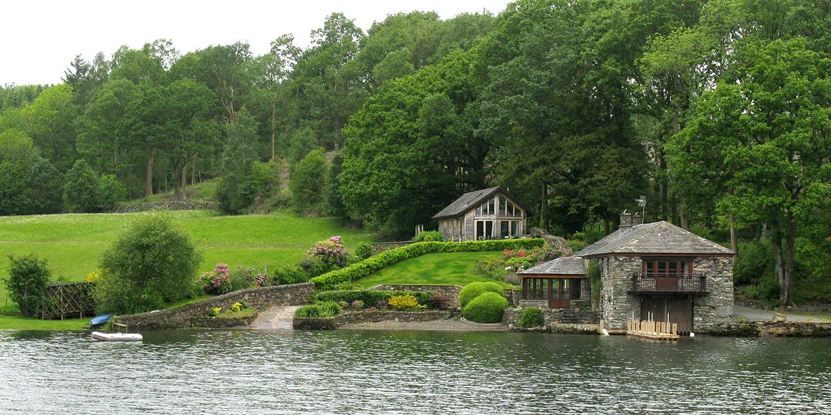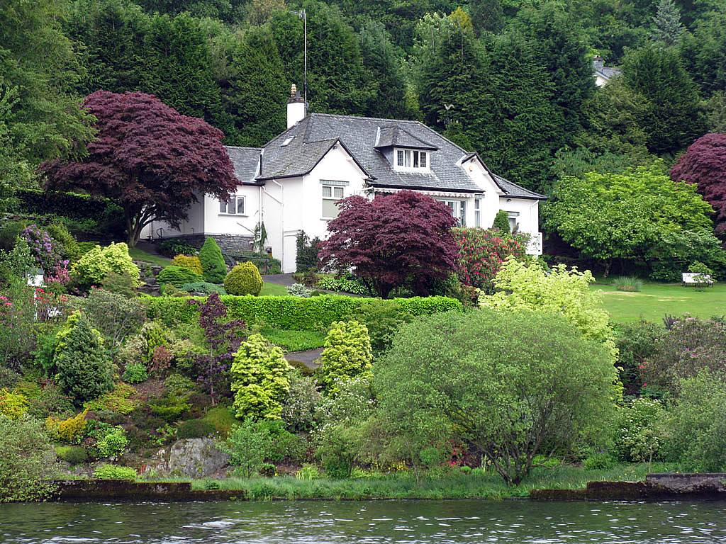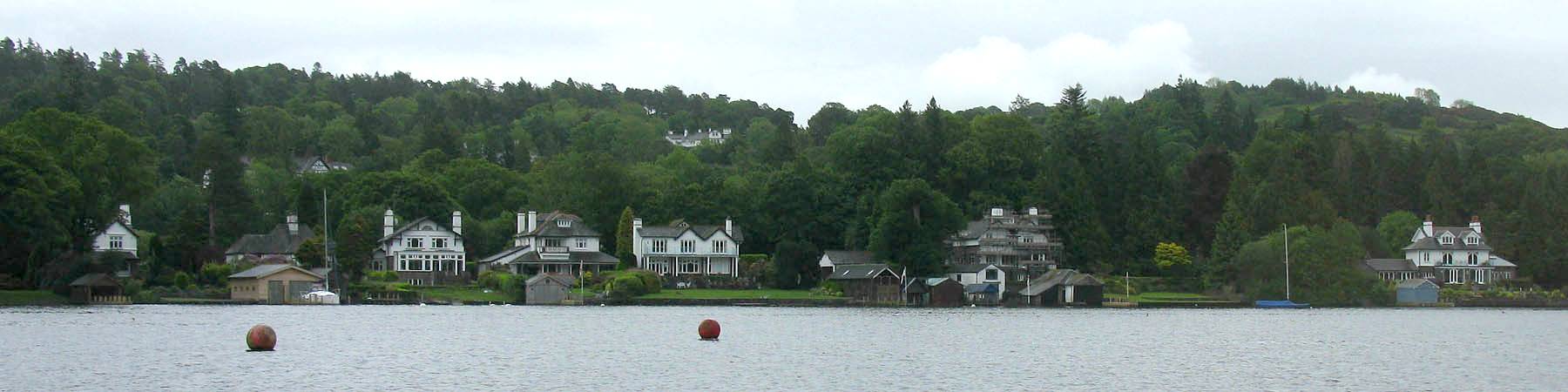 Another fancy abode by the lake. | Looking back north to Storrs Temple. | Another curious looking lakeside place. | A closer look at the Victorian lookout point. | The Western side of the car ferry across the middle of the lake. |