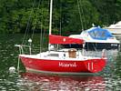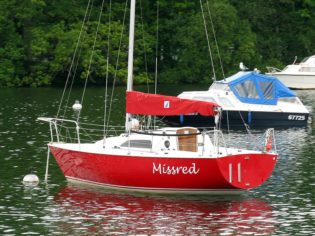 Lots of boats nestled among the islands, especially near Belle Isle, the biggest island. | Another little red boat! | This boat caught my eye as it has the same name as my sister's childhood nickname. |