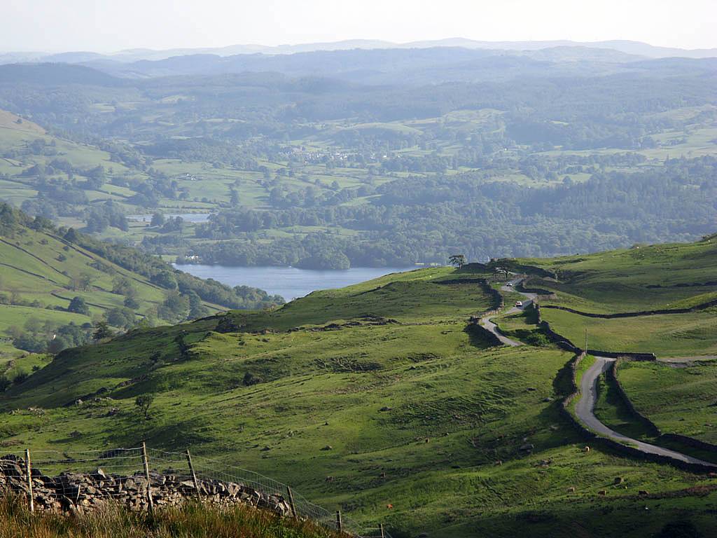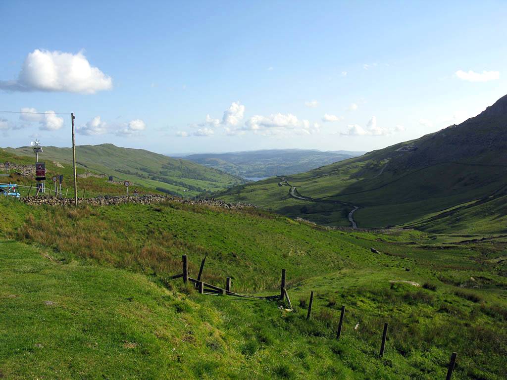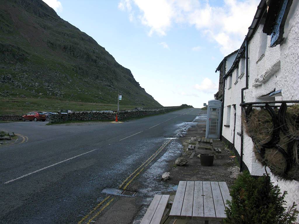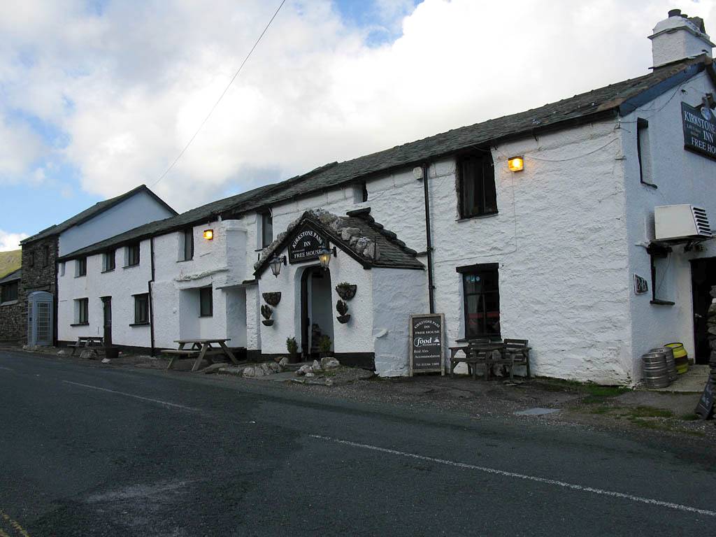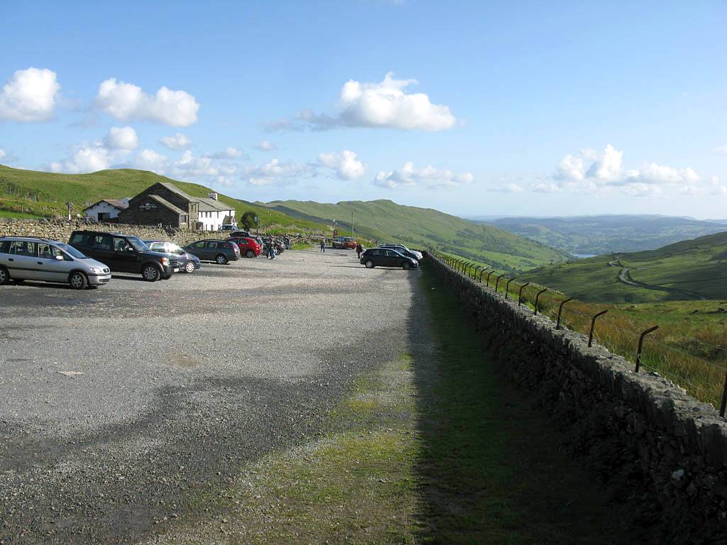 The Kirkstone Pass Inn carpark. Great view! | Scandale Fell towering above the carpark to the West. | The Kirkstone Pass Inn. | Looking down The Struggle as it snakes its way to Ambleside. |