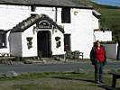 Kirkstone Pass Inn. We decided to go back up the Kirkstone Pass (via the easier A592 instead of via the struggle) for supper. The weather, unlike two days ago, was sunny and clear, and this time we could see for miles. We stopped at the Kirkstone Pass Inn pub as planned and had a nice supper before turning tail and returning to Bowness to retire for the night.
