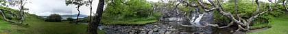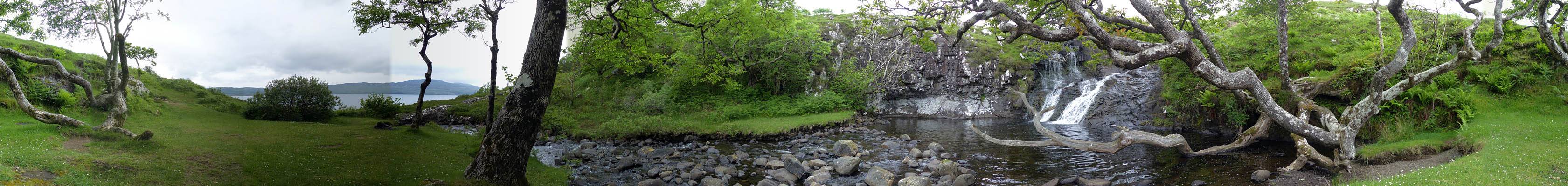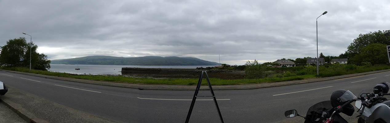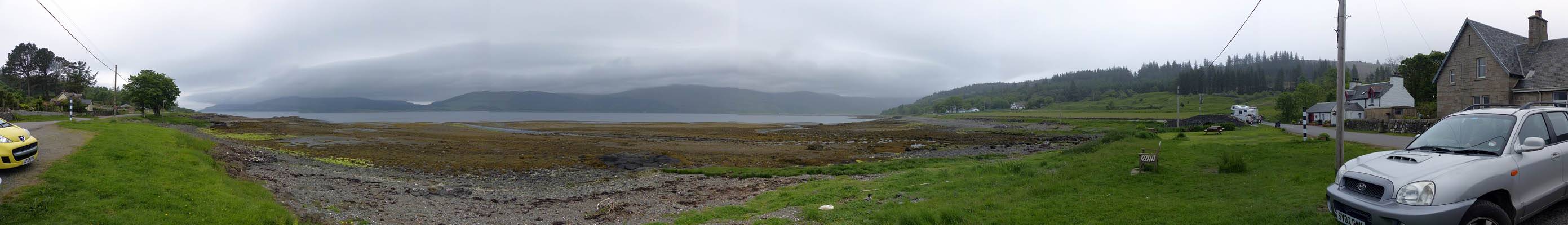 Exploring the minor road that cut the Northwest corner of Mull. | A hazy long range view of the Sound of Ulva from the North as we approach Loch Tuath. | Dropping down through the woods to Loch Ulva to rejoin the B8073. | Loch Tuath panorama with Ulva visible in the background. |