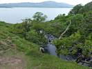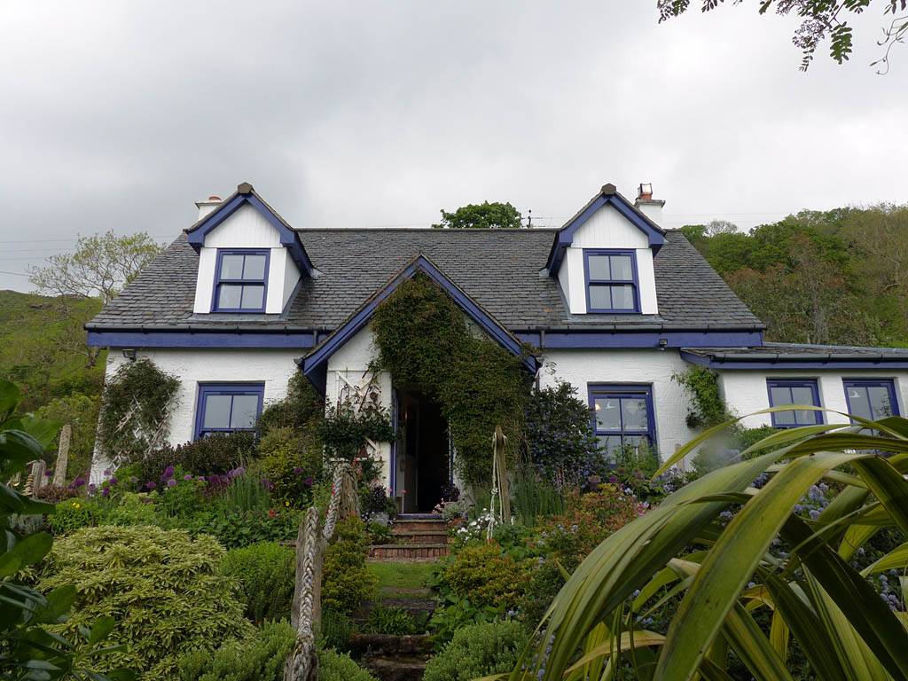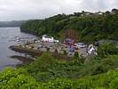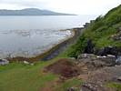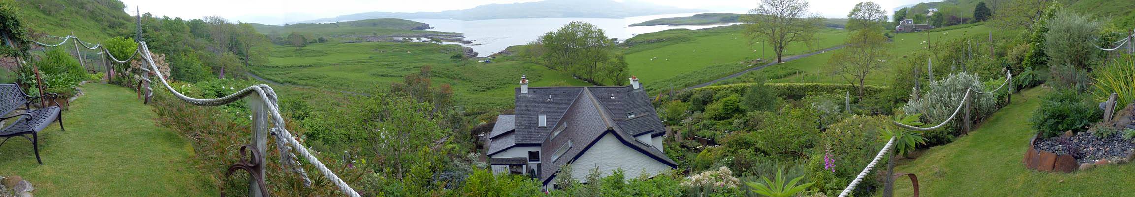 After Dervaig we turned off onto a minor road, cutting the Calgary Bay corner of the isle, and after passing some fairly wild terrain we rejoined the B8073, heading Southeast along the shore of Loch Tuath to Ballygown, where 'Lucy's House'is. It contains an enchanting garden with plants for sale on an honesty system. I followed the garden path round to the hill above the back of the house, where a spactacular view across Loch Tuath was seen.
