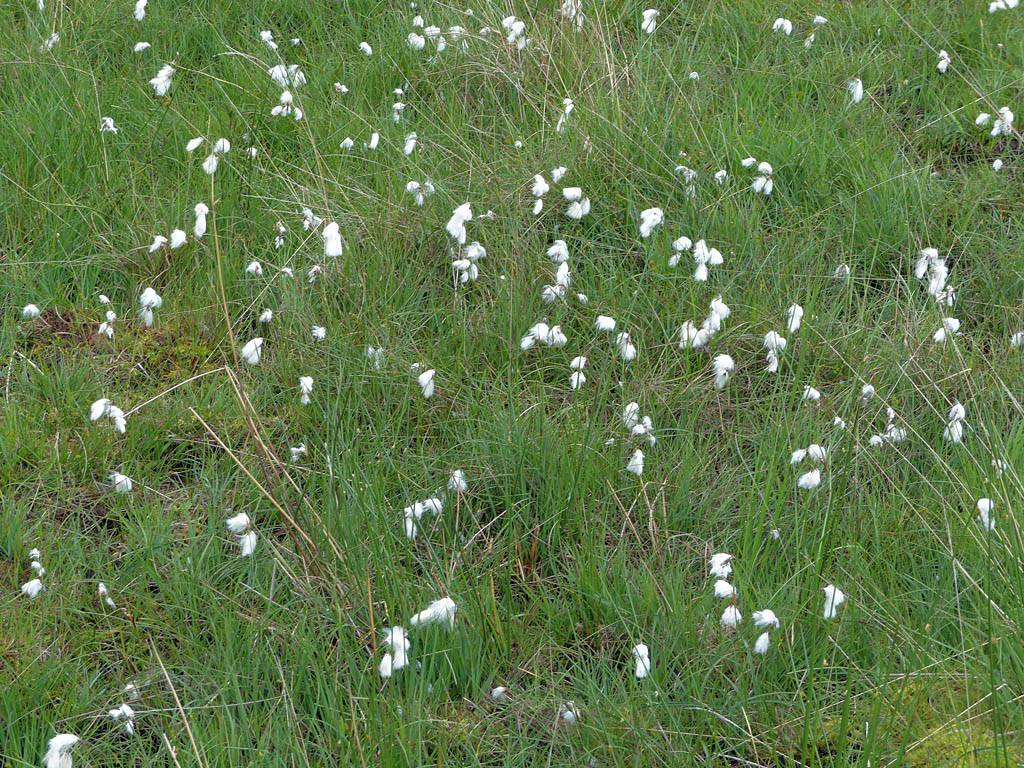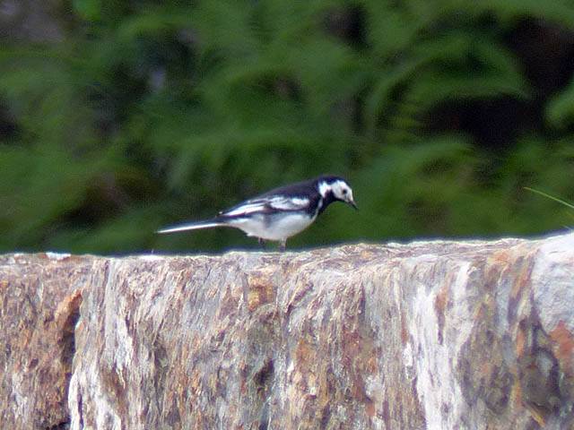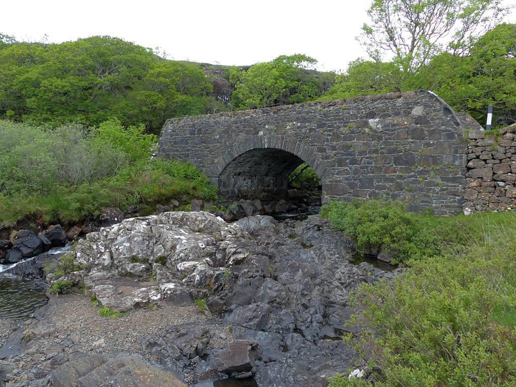 The waterfall immediately upstream of the road. | Looking South across Loch Tuath to Ulva and the mountains around Ardmeanach (Central part of Mull). To the left of the view the mountains get bigger, culminating in Ben More, Mull's only Munro. | A Pied Wagtail on the wall of the bridge over the river. | Bog cotton, or cotton grass. Found in soggy places. | The road bridge from just downstream. | The river downstream of the road. |