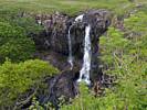 Exploring downstream of the road as the water cascades towards the sea. | Reaching the final cliff above the sea. |