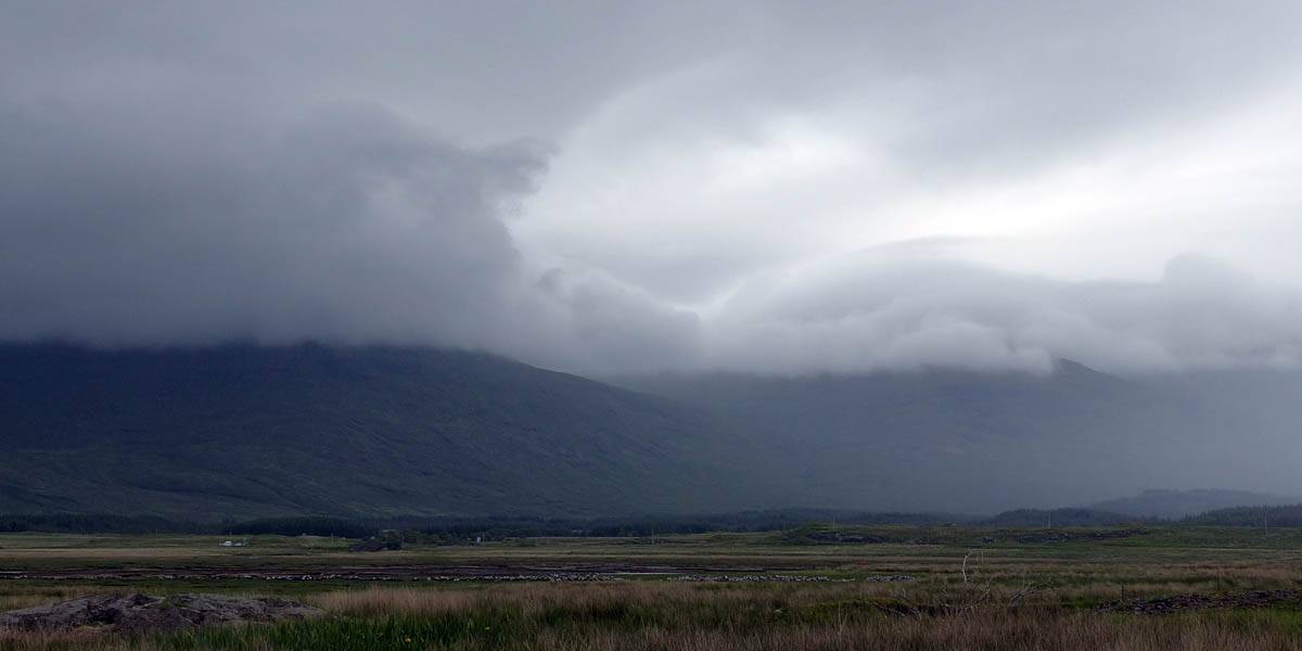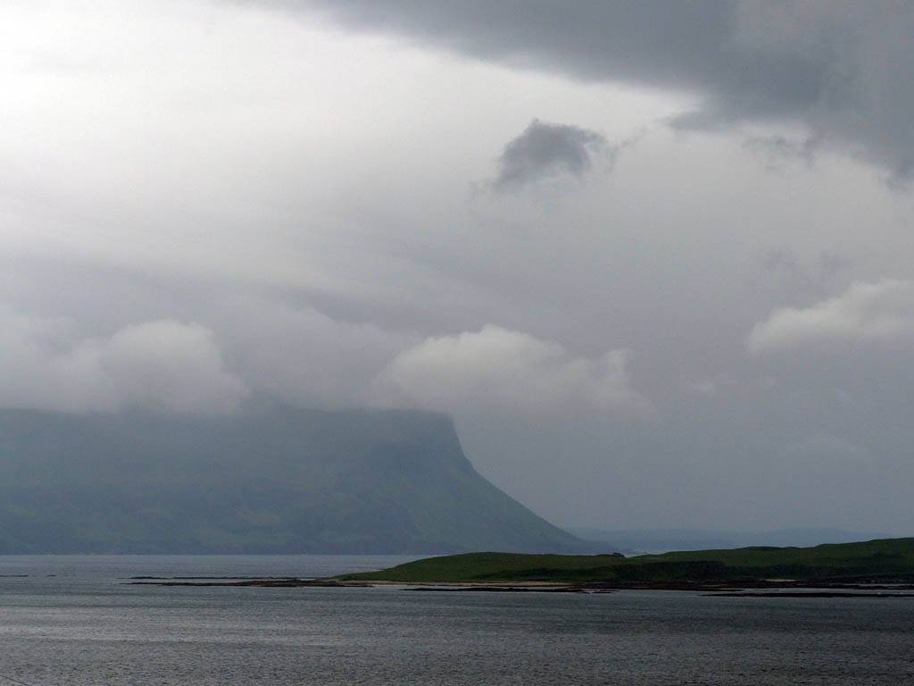 Spectacular wave induced cloudscapes above Loch Na Keal. | Looking across to cliffs on the South side of Loch Na Keal. | Eorsa Island. |