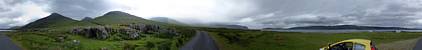 Lucy's House at Ballygown and the panoramic view of Loch Tuath from the path on the hill above. |