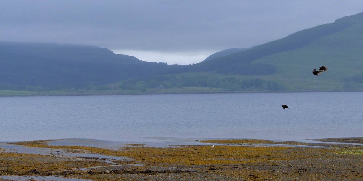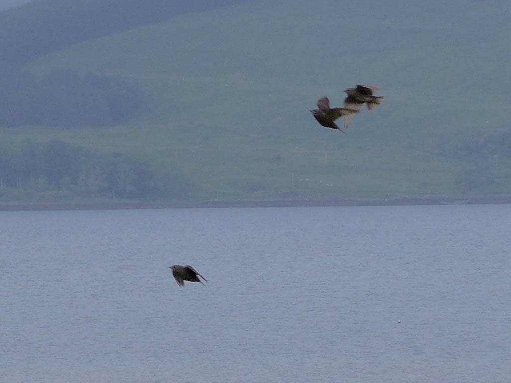 Today Jack took me on a tour of most of the isle. First we went round the North side before looping round to the South in an anticlockwise motion. The stars of the day were the eagles (Golden and White Tailed / Sea) which more than made up for the grey and damp weather. They are huge. Ravens are pretty big but the ones mobbing the eagles looked tiny next to them.