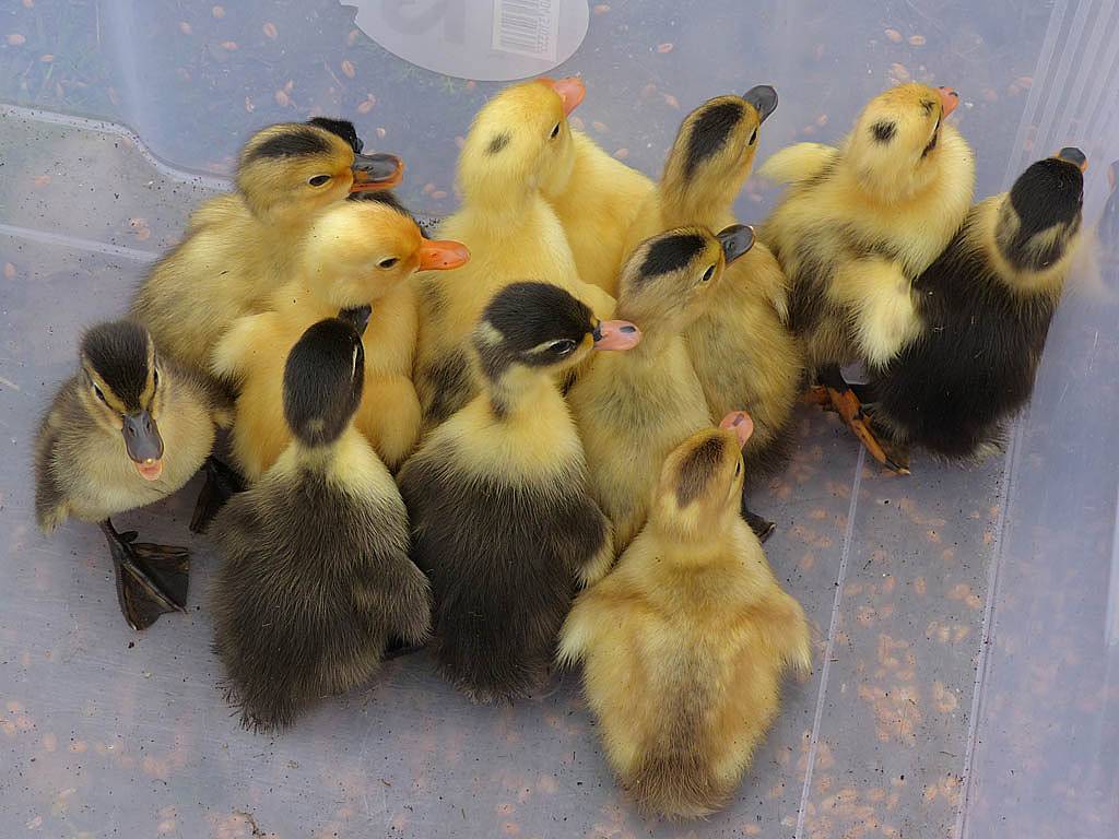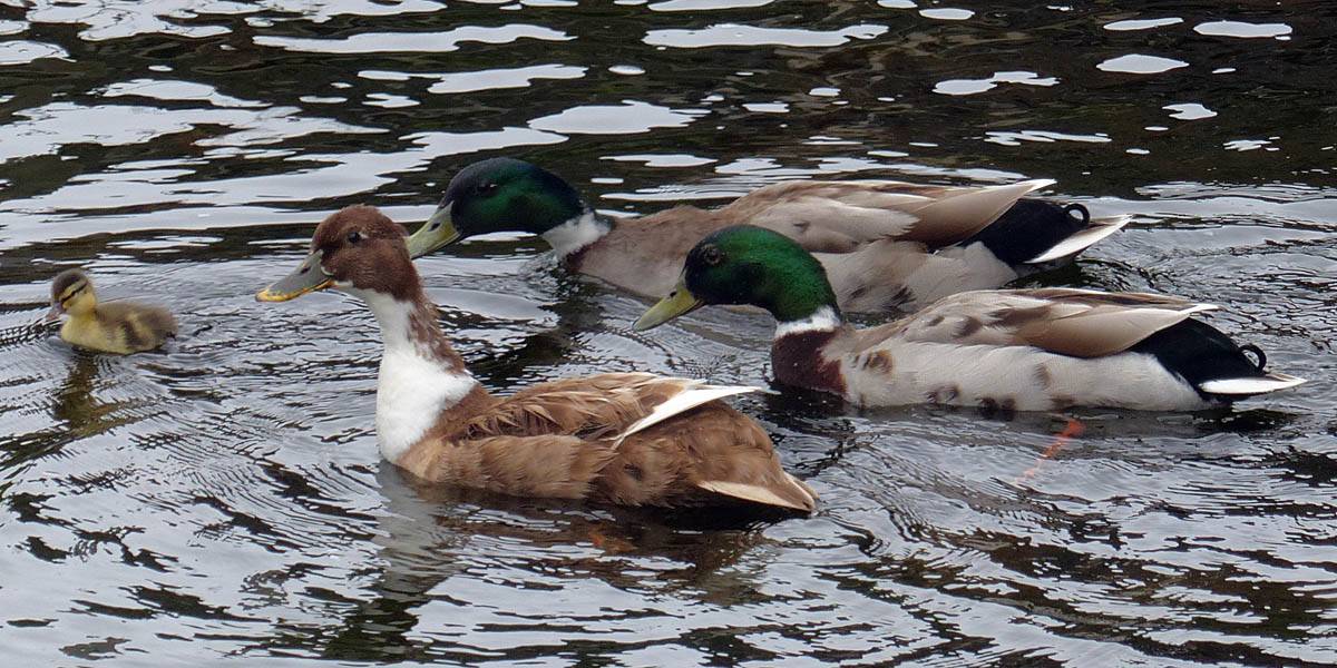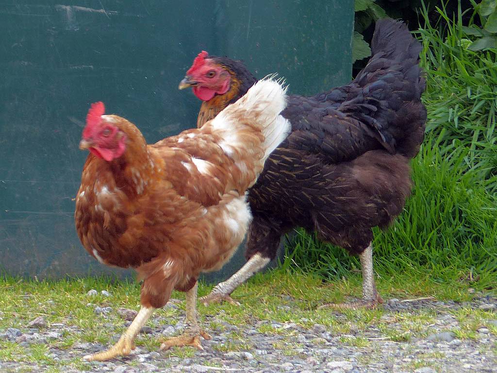 Ducklings were being gathered by the locals. | The parents and one remaining duckling. | Chickens running around Pennyghael. |