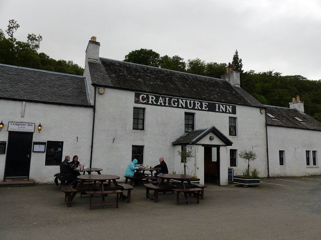 Somewhere South of Craignure, Jack released two freshly emerged Female Orangetips that he had bred through from Caterpillars. (They occur naturally here so no problem. They are also normally out later than the Southern counterparts.) After feeding up on nectar the ladies soon took their maiden flights and were free. | Cinnabar moth at the release site. | The Craignure Inn pub where we stopped for tea. | Craignure Inn view Northeast across the Sound of Mull. |
