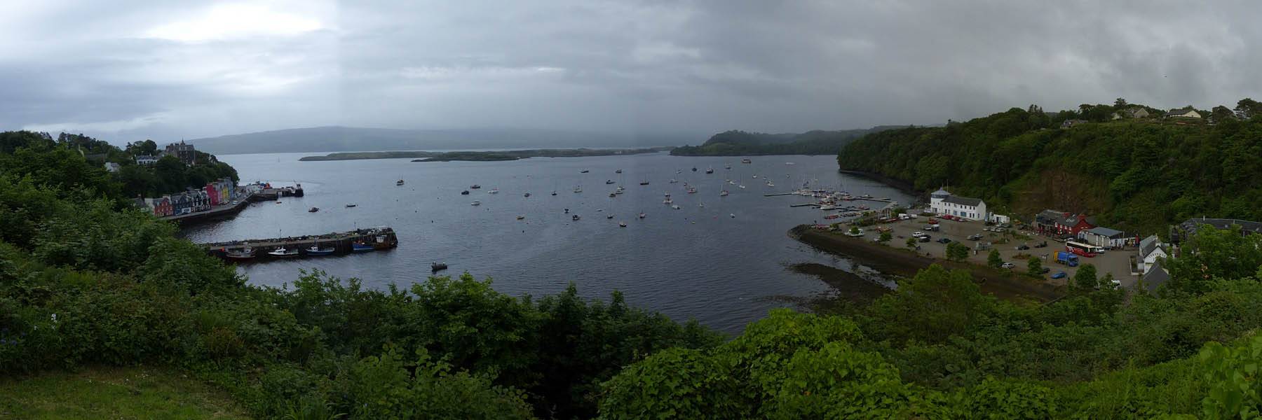 Back in Tobermory I found a vantage point on top of the hill close to Jack's place where there was a panoramic view over the bay. Here the houses were on one side of the road and a series of gardens on the other side on the hill's edge. A kind local resident let me go into her garden to get the best view I could.